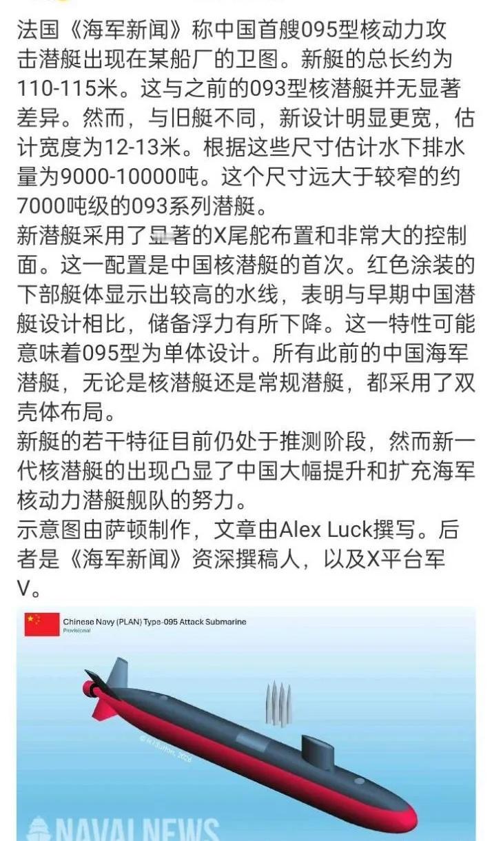 中国超级核动力攻击潜艇(095)被法媒体曝出卫星图片证实,至此我国正式成为这个星