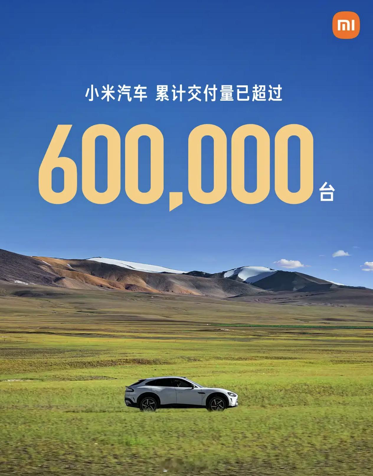 小米第一台SU7交付的时间是2024年4月3日,2026年2月13日小米已经交付了60万台车。