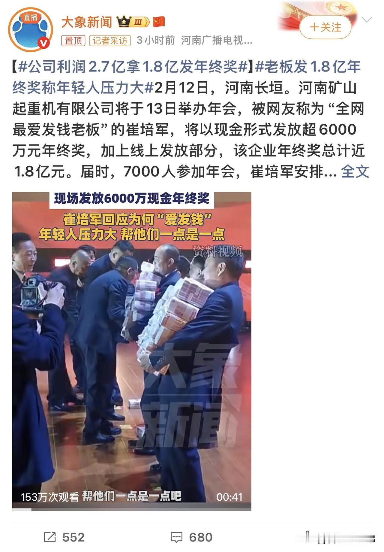公司利润2.7亿拿1.8亿发年终奖格局直接拉满!利润2.7亿豪掷1.8亿发年终奖,这才是真正的有福同享!一个公司对员工的诚意,从来都是发展的底气和高度。好奇大家今年的年终奖都到手了吗?🧧[飞吻]
