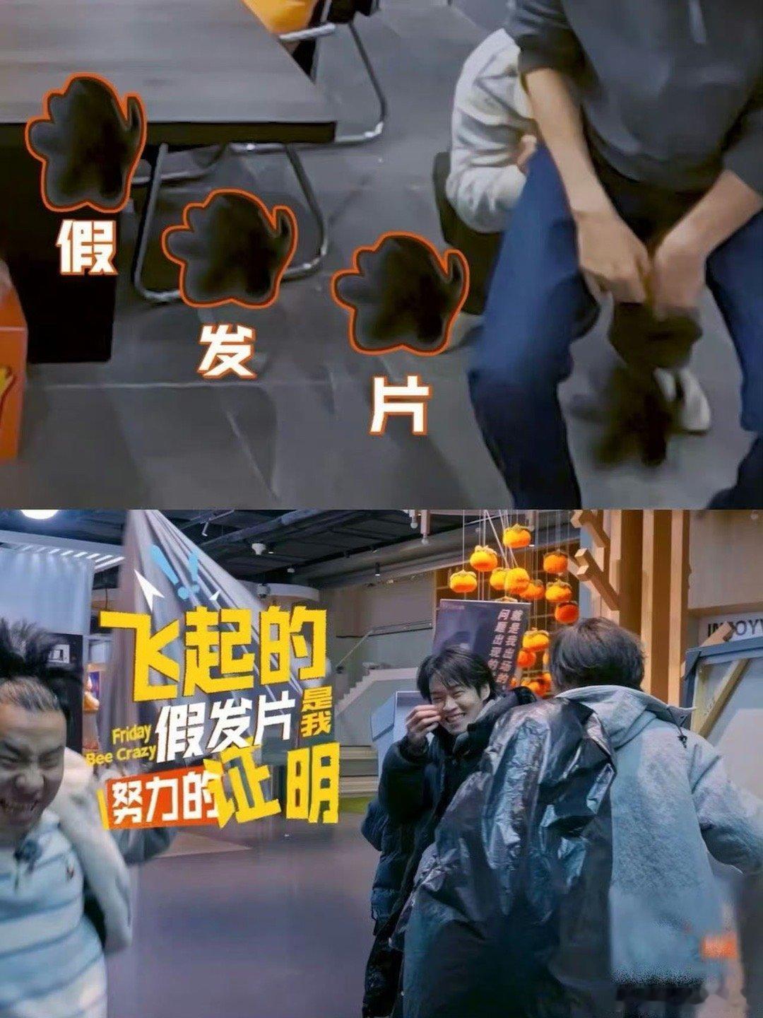 魏大勋山羊跳带走了徐志胜的假发片 我宣布周五晚高疯 名场面+1!本期辩题:“对象难受蹲下时,你在TA身上山羊跳,该不该分?”Bee疯糖家族其他人:唇枪舌剑!魏大勋&徐志胜:你们只是嘴上说说,我们直接行动!结果大勋一跳——志胜的假发片当场“殉职”!一小片头皮水灵灵入镜,面对如此行为艺术,全场笑到打鸣🐔志胜OS:以后和头发有关的动作,一律婉拒!