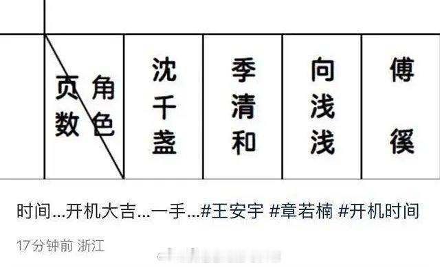 章若楠,王安宇《想把你和时间藏起来》开机通告单🐧,女主沈千盏名字在前