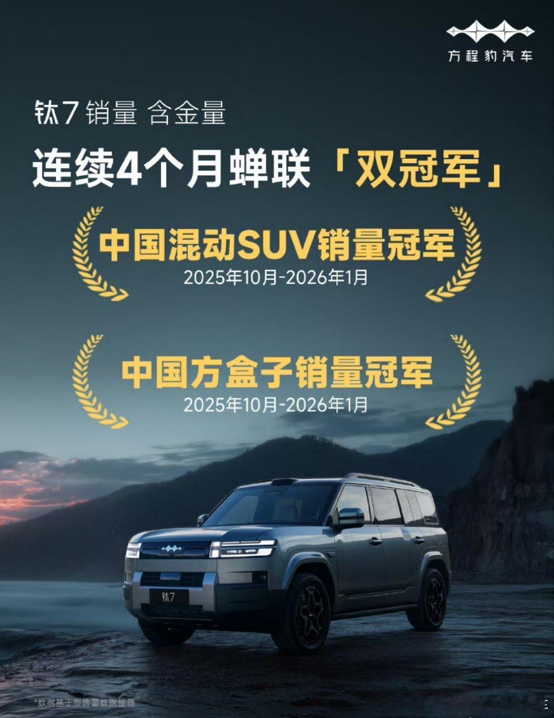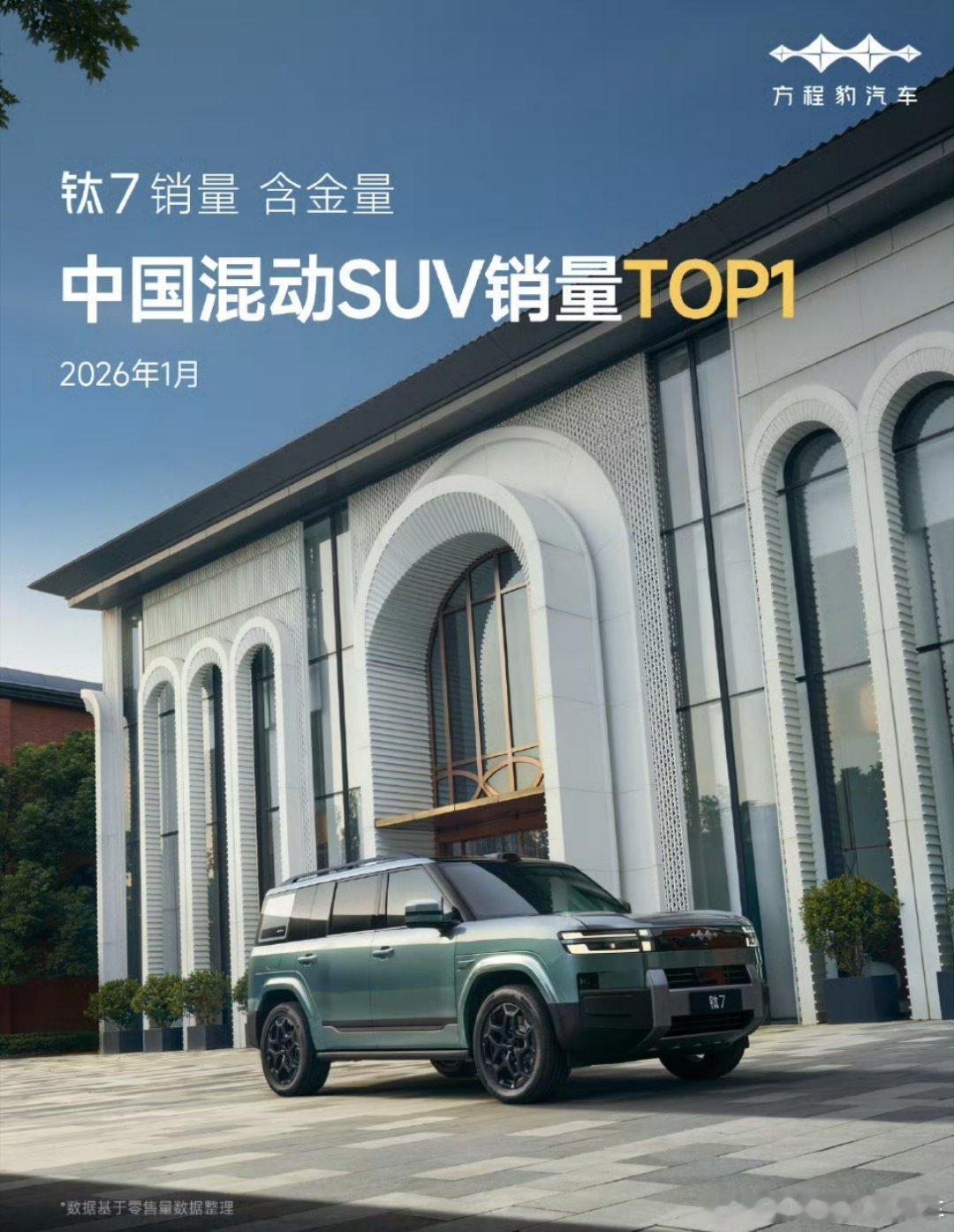 方程豹钛7,拿下1月中国混动全品类销量TOP 1,并连续4个月蝉联「双冠军」 方程豹方程豹钛7新能源汽车