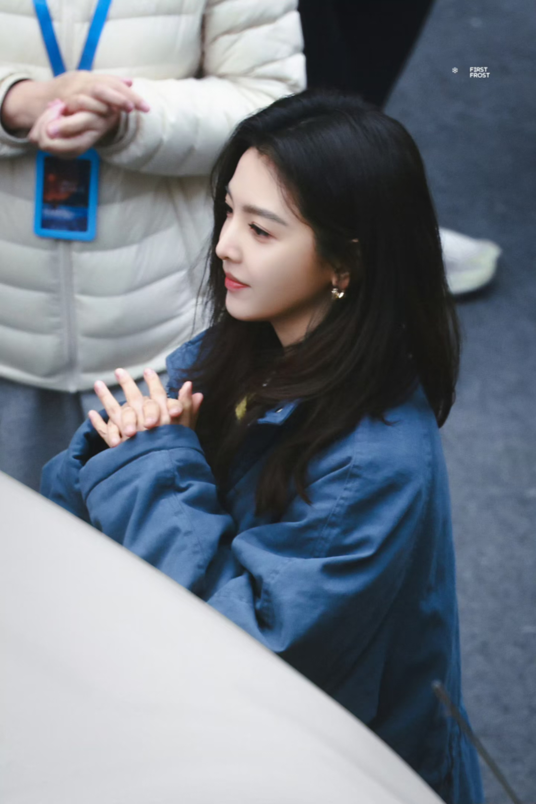 张天爱跟素人合影,胯真的好宽,大宅院似的