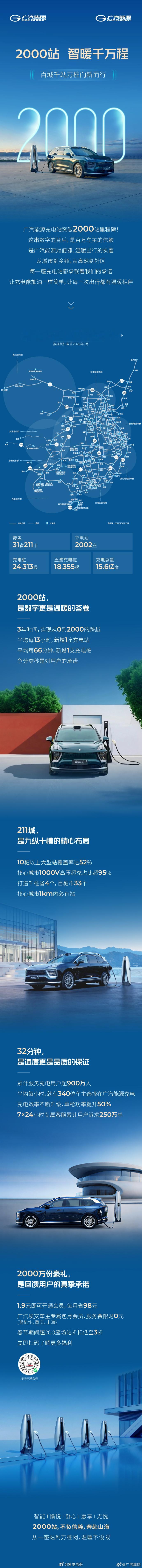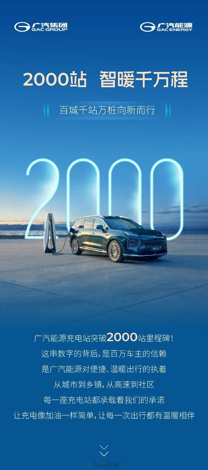 广汽集团自营充电站突破2000站,覆盖31省和211个市。三年的时间实现从0到2000,算下来每13个小时就新增了一座充电站。