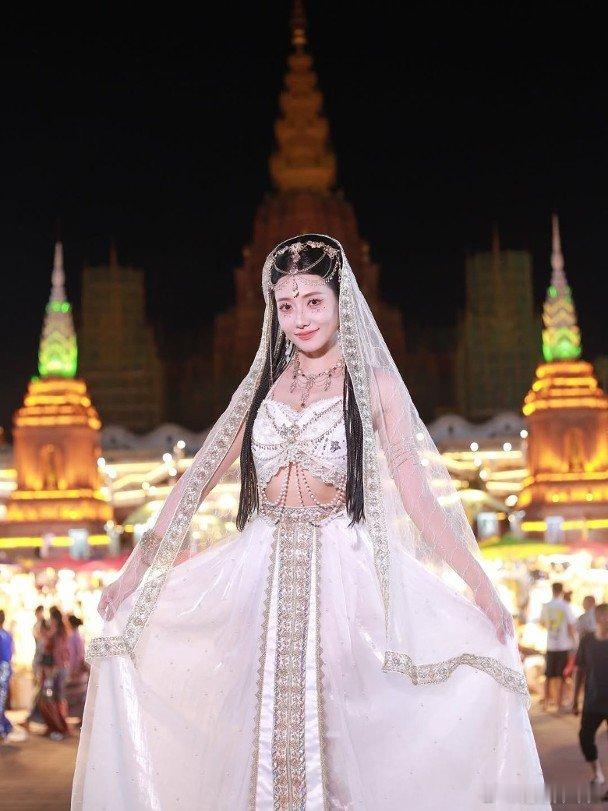 藝人劉溫馨與湯加文早前到雲南西雙版納,兩人換上一白一黑的民族服裝,並化上網紅妝進行夜拍。劉溫馨在社交網分享靚相,以白色民族服示人的她仙氣十足,妝扮艷麗,相當有民族色彩。但原來相片她一直「私藏」,因覺得網紅妝太誇張,覺得好像變成另一個人,故到近日才與網民分享。