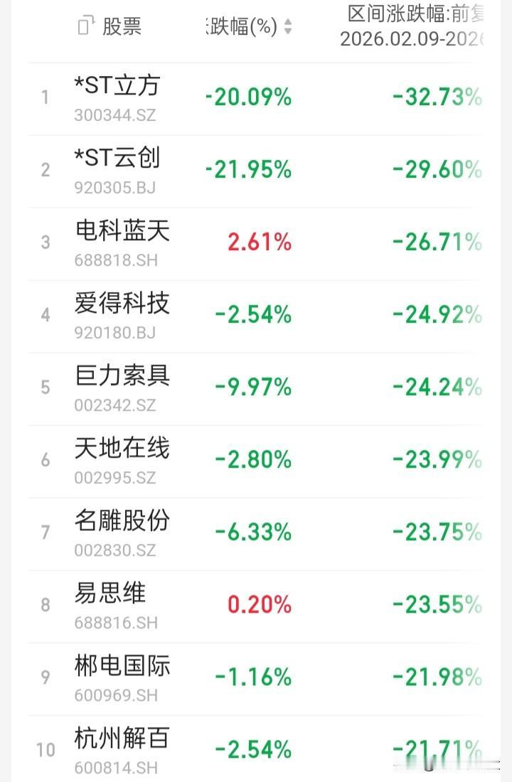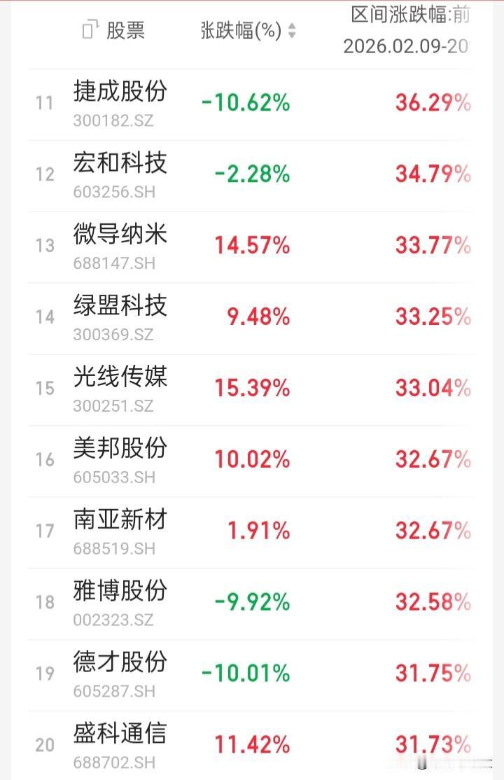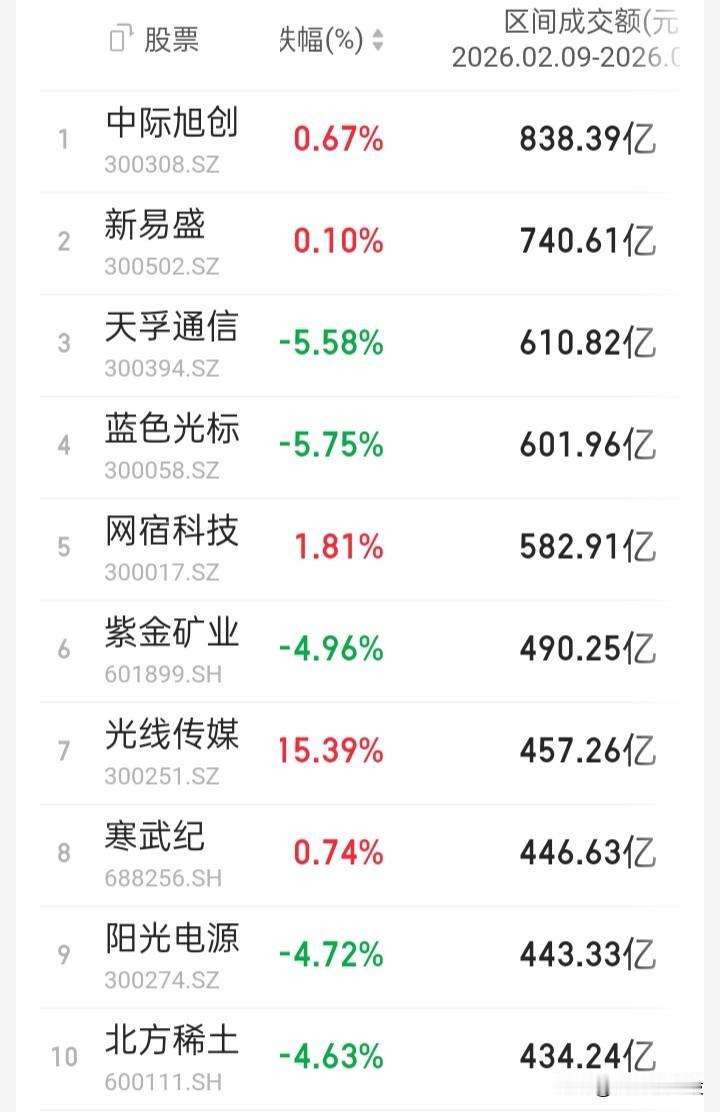 【本周A股02.09-02.13区间观察】“上证”周涨0.41%(三连阴),“深证成指”周涨1.39%(三连阴),“创业板指”周涨1.22%(三连阴),“科创综指”周涨3.17%,“沪深300”周涨0.36%(五连阴) 总成交额前二十、涨幅前三十、跌幅前三十↓ ㊗️大家新年快乐,龙马精神,阖家幸福,万事如意,事事顺意!假期休市过后,马年账户长虹,持仓全红,牛股相伴,财源滚滚!