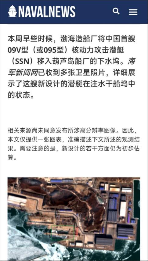法国军事媒体《海军新闻》(NAVAL NEWS)报道了,中国海军最新一代的095型攻击核潜艇的消息。《海军新闻》根据一张尚未被允许公开的卫星图片,判断095型核潜艇的首艇已经下水。 艇长在110~115米之间,与093B型攻击核潜艇相近,但是艇身直径更大,在12~13米之间,水下满载排水量将超过9000吨并无限逼近万吨,这表明中国已经攻克了,大直径耐压壳体的建造技术,这项技术长期限制了,中国核潜艇的吨位增长。 大直径耐压壳体看着只是“变粗了”,实则是对材料、工艺、设计的三重终极考验,之前几十年里,就是这道坎把中国核潜艇的吨位,死死卡在低位。 先说说,这壳体有多重要。潜艇潜到水下,每往下走一米,压力就多一分。一块扑克牌大小的壳板,在极限深度要承受近1.5吨的海水压力,任何一点焊接缺陷或材料瑕疵,都可能导致艇毁人亡。 之前的核潜艇直径小,就是因为没能力造出又粗又结实的“铁壳子”,只能在小尺寸里做文章。 093B型艇身直径不到10米,内部空间挤得像沙丁鱼罐头,设备、武器、动力系统只能互相“让路”,吨位自然上不去,性能也受到连锁限制。 要造大直径壳体,首先得有像样的钢材。这不是普通的船用钢,得是屈服强度达1000兆帕级别的特种合金钢,还得兼顾韧性和抗腐蚀性,不然深海压力下要么断要么裂。 更关键的是,为了避免被磁探测,钢材里还得加入钛元素,形成无磁钛合金钢,既保证强度又降低磁性特征。 这种钢材的冶炼难度极大,要去除有害杂质,保证成分均匀,之前很长时间里,就算炼出钢坯,也没法加工成符合要求的弧形钢板。 解决了材料,焊接又是一道生死关。超厚高强度钢的焊接,就像在悬崖边跳舞,含碳量高导致热影响区容易产生裂纹,一道焊缝出问题,整段壳体就报废。 095采用的电渣焊工艺,能在焊接时同时进行退火和回火热处理,让焊缝强度和母材保持一致,还得通过滚动装置让分段壳体缓慢旋转,保证焊接均匀。 之前手工焊接或普通机械焊接,根本达不到这种精度,大直径壳体的焊缝长度是小直径的好几倍,任何一处漏焊或虚焊都是致命隐患。 加工工艺的突破更让人意外。传统大直径壳体靠大型卷板机压弯钢板,但钢板越厚、直径越大,卷制时的误差就越难控制,必须精准到毫米级才能保证壳体圆度。 现在采用的电渣溶铸工艺,直接用结晶器模具将钢水铸造成弧形分段体,不用机械加工就能达到标准弧度,再通过自动焊接把35到50个分段体拼接成完整壳体。 这种工艺不仅解决了卷板机“力不从心”的问题,还能直接铸出导弹发射舱口、鱼雷发射口等结构,减少后续加工的风险。 壳体直径从不到10米涨到12到13米,带来的不只是吨位增加。内部空间一下子宽敞起来,之前挤在角落的设备现在能合理布局,更大的反应堆可以轻松安装,功率提升后水下航速和续航力自然水涨船高。 更重要的是,空间冗余让静音设计有了施展余地,能布置更复杂的减震浮筏,发动机和机械设备的振动被大幅吸收,再加上优化的艇型减少水流噪音,095的噪音水平能降到95分贝以下,接近海洋背景噪音,这意味着反潜机的声呐浮标很难捕捉到它的踪迹。 武器系统也跟着升级,更大的艇身能装下24单元通用垂发系统,不再是单纯增加导弹数量,而是能兼容鹰击-19、鹰击-21这类高超音速武器。 这些导弹能在航母防空圈外800到1200公里发起攻击,末端速度达8马赫还能变轨,现有防空系统根本拦不住。 之前的核潜艇只能近距离发射鱼雷或普通巡航导弹,现在095能在安全距离外饱和打击,作战逻辑从“靠近了打”变成“看不见就打”。 探测能力的提升同样依赖空间增加,更大的球艏声呐和舷侧阵声呐能安装更多传感器,数据处理单元也能升级,探测距离和识别精度大幅提高。 之前受限于空间,声呐系统只能牺牲部分性能,现在不用在探测和武器之间做取舍,能同时拥有强火力和敏锐的“耳朵”。 这项技术突破的意义,远不止095这一艘艇。它证明中国已经掌握了大直径耐压壳体的全套技术,从特种钢材冶炼、电渣溶铸成型到自动焊接,每个环节都实现了自主可控。 之前西方一直认为,大直径壳体技术需要三十年以上的积累,中国跳过了渐进式发展,直接实现了同步突破。 这意味着未来中国核潜艇的吨位不再受限于壳体技术,后续型号可以根据需求继续放大,搭载更先进的设备和武器。 之前中国核潜艇一直被贴着“噪音大、吨位小、火力弱”的标签,095的出现彻底打破了这种认知,让西方不得不重新评估中国的水下力量。 更关键的是,大直径壳体技术的突破是系统性的,不是单一环节的进步。 它带动了特种冶金、精密制造、自动控制等一系列相关产业的升级,这些技术不仅能用在核潜艇上,还能反哺民用船舶、深海装备等领域。 这种技术溢出效应,才是真正提升工业实力的关键。