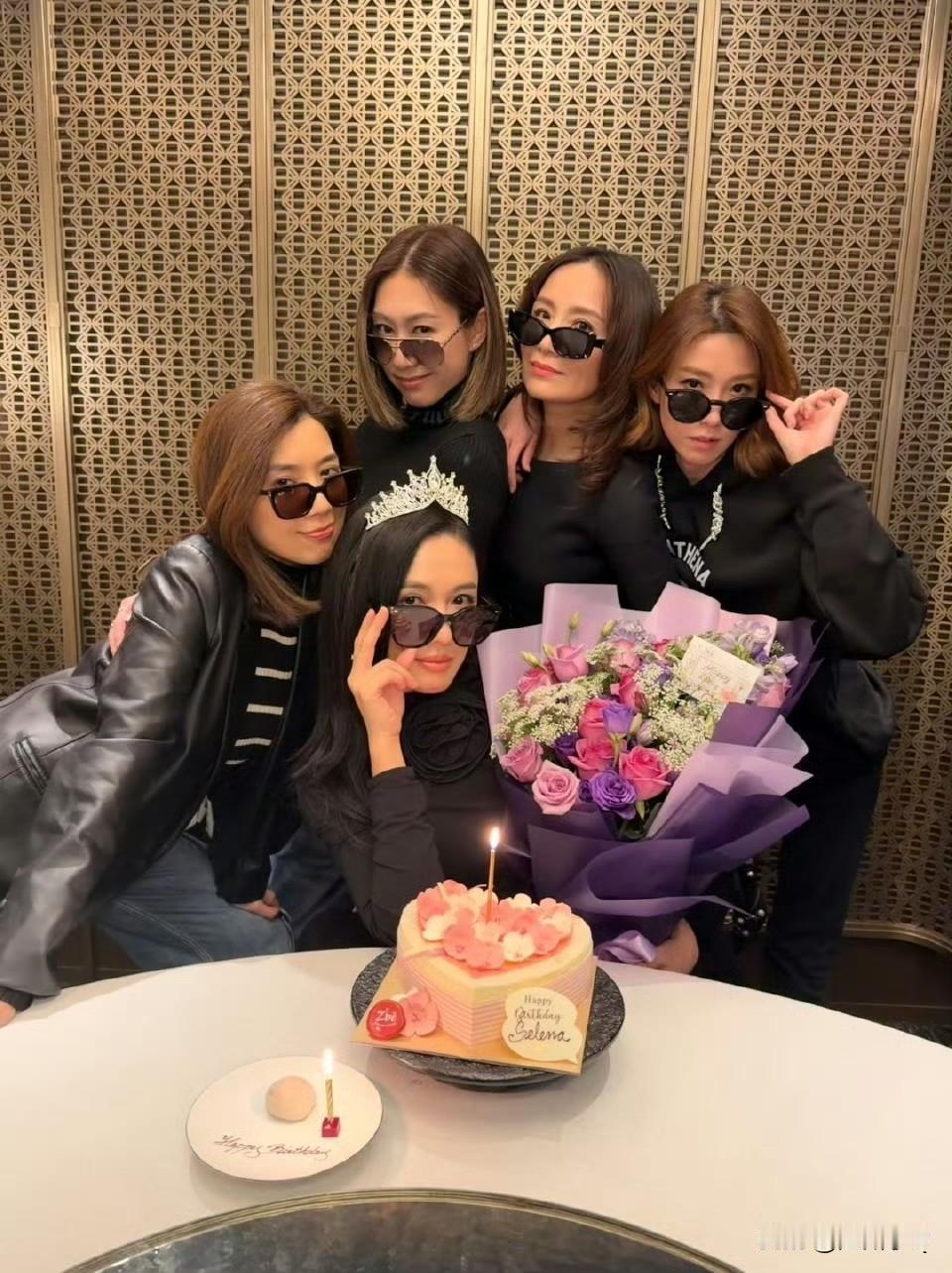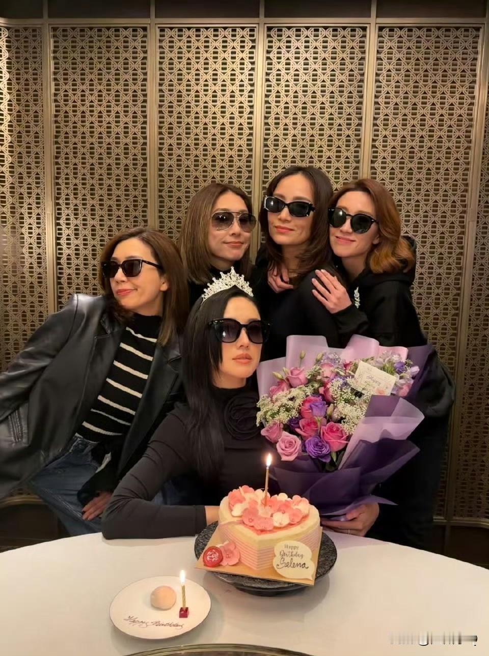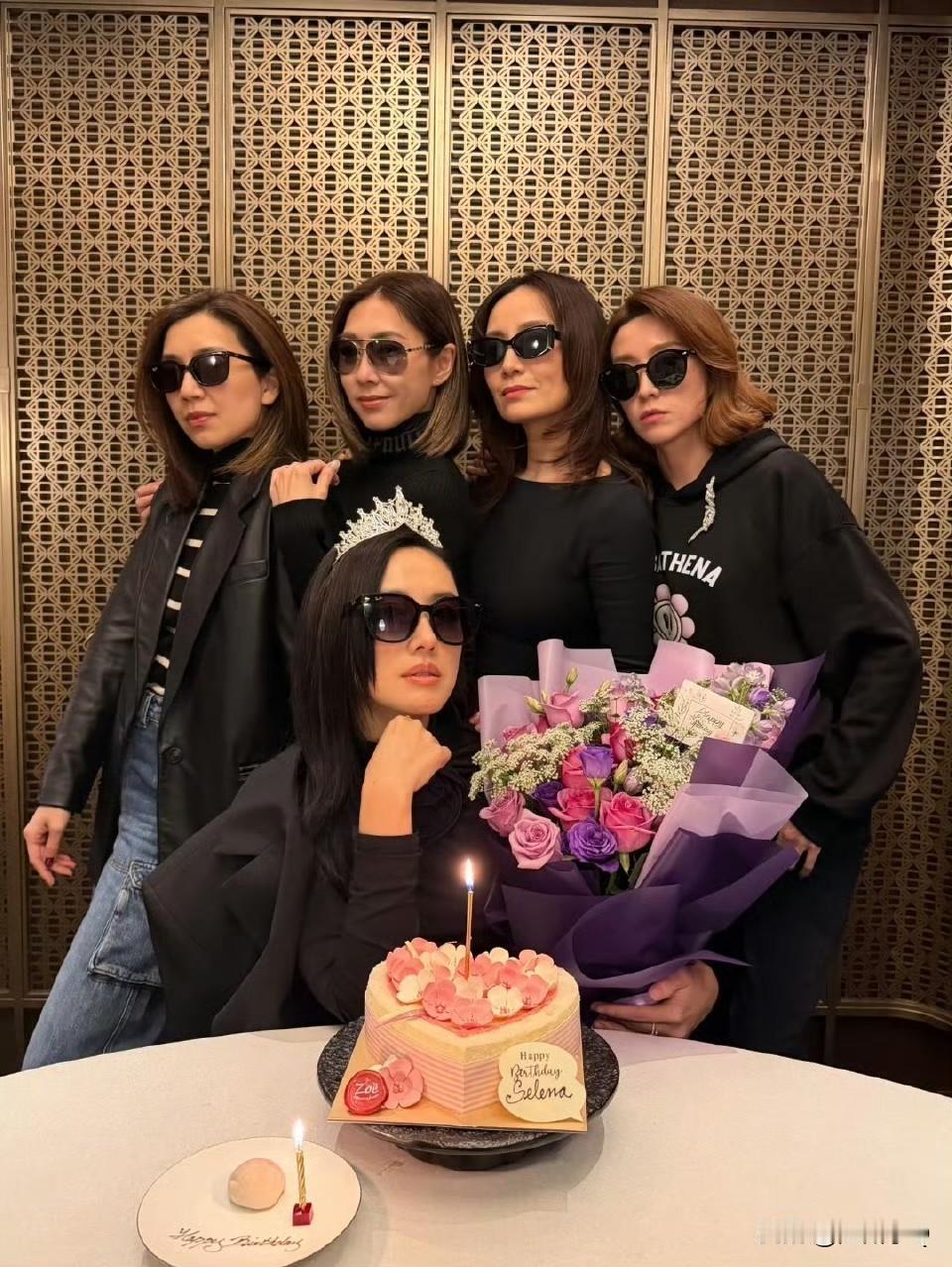李施嬅庆生,姐妹团齐刷刷穿上黑色衣服和戴上墨镜,又酷又飒。港星就是港星,不医美不do脸,每张脸都很有辨识度,看着就是舒服。