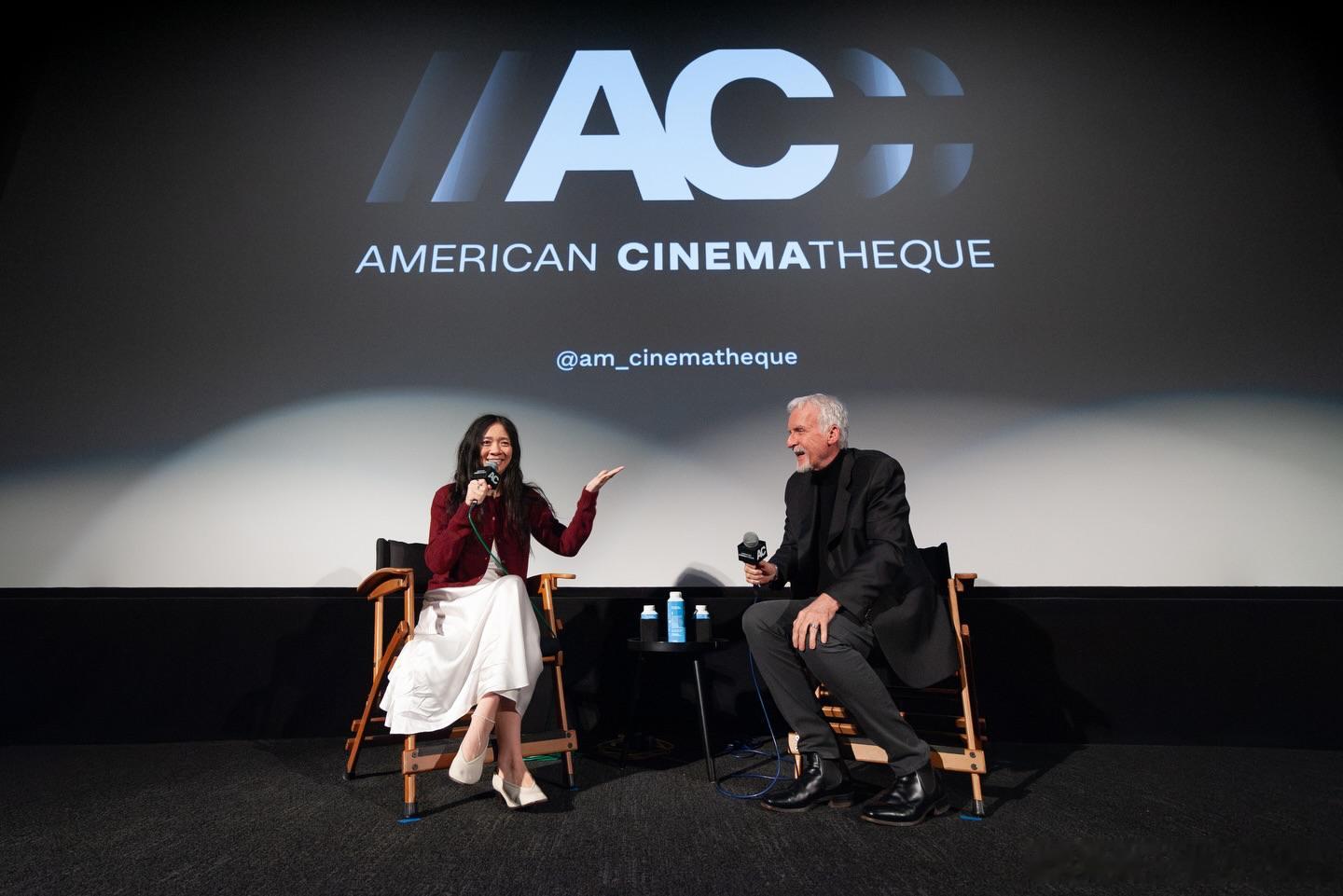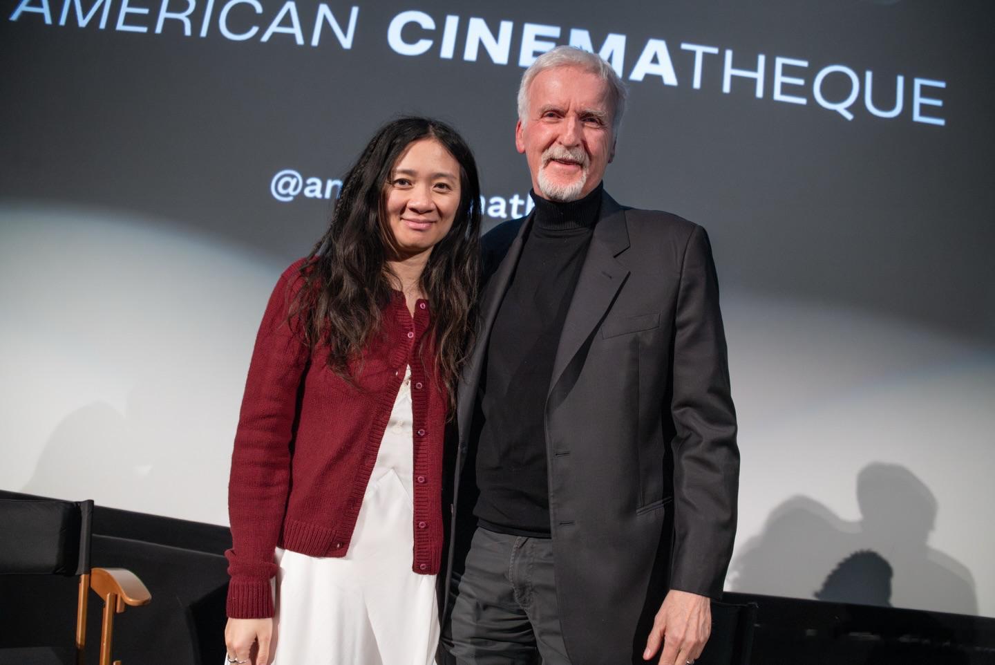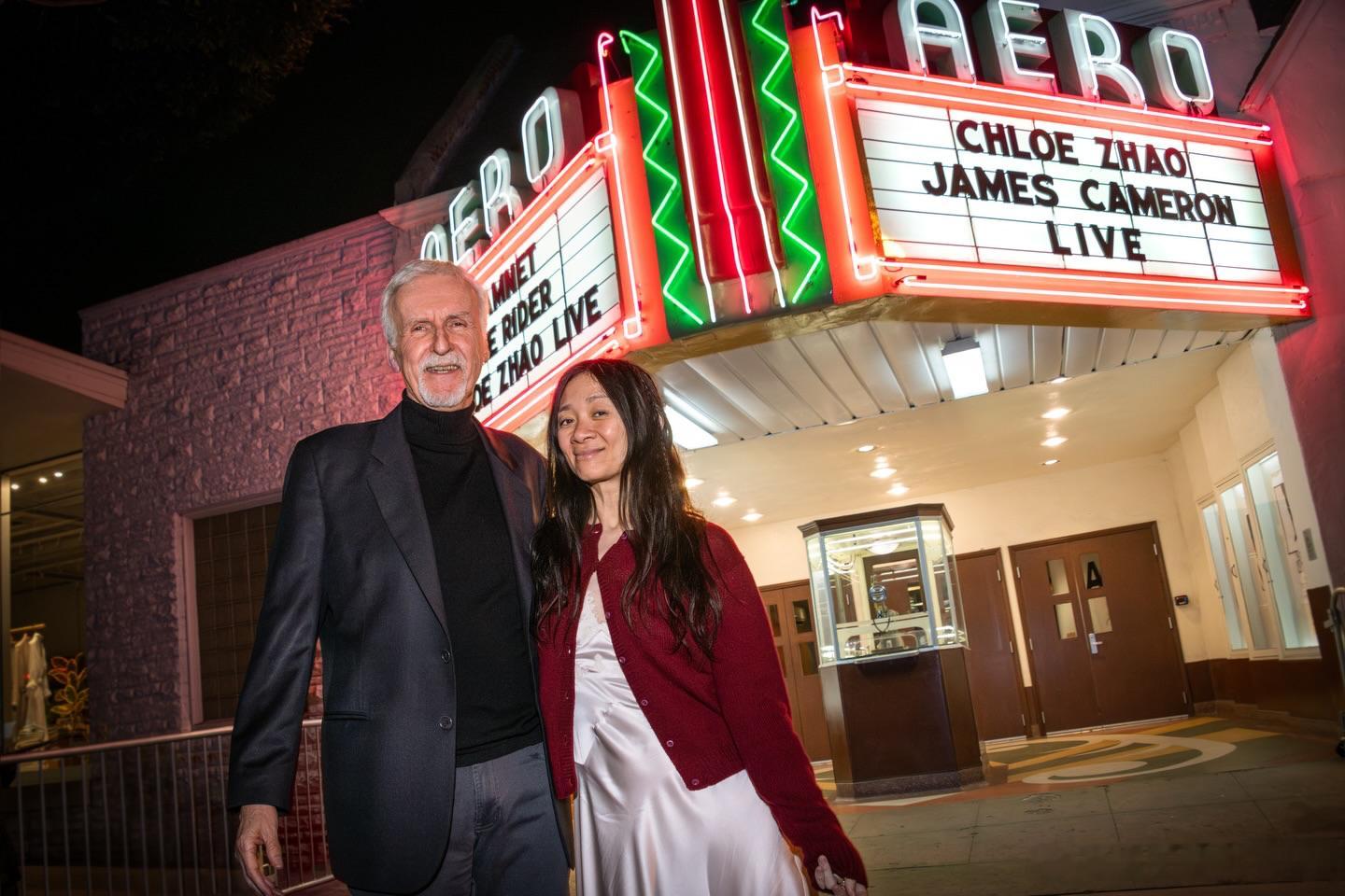 赵婷和詹姆斯·卡梅隆一起出席了一场《哈姆奈特》的映后