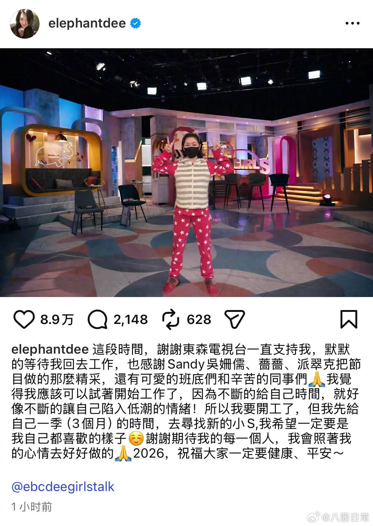 小S宣布复工小S说可以试着开始工作了13日,小S在社交平台上宣布复工:“我觉得