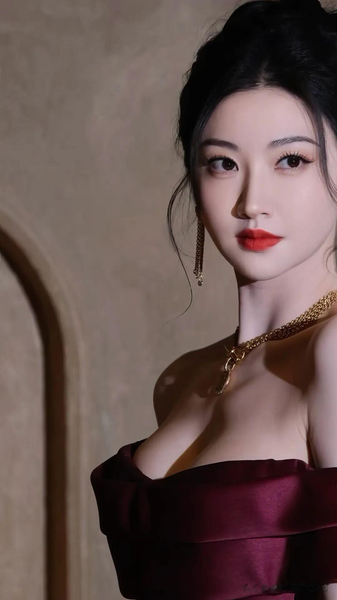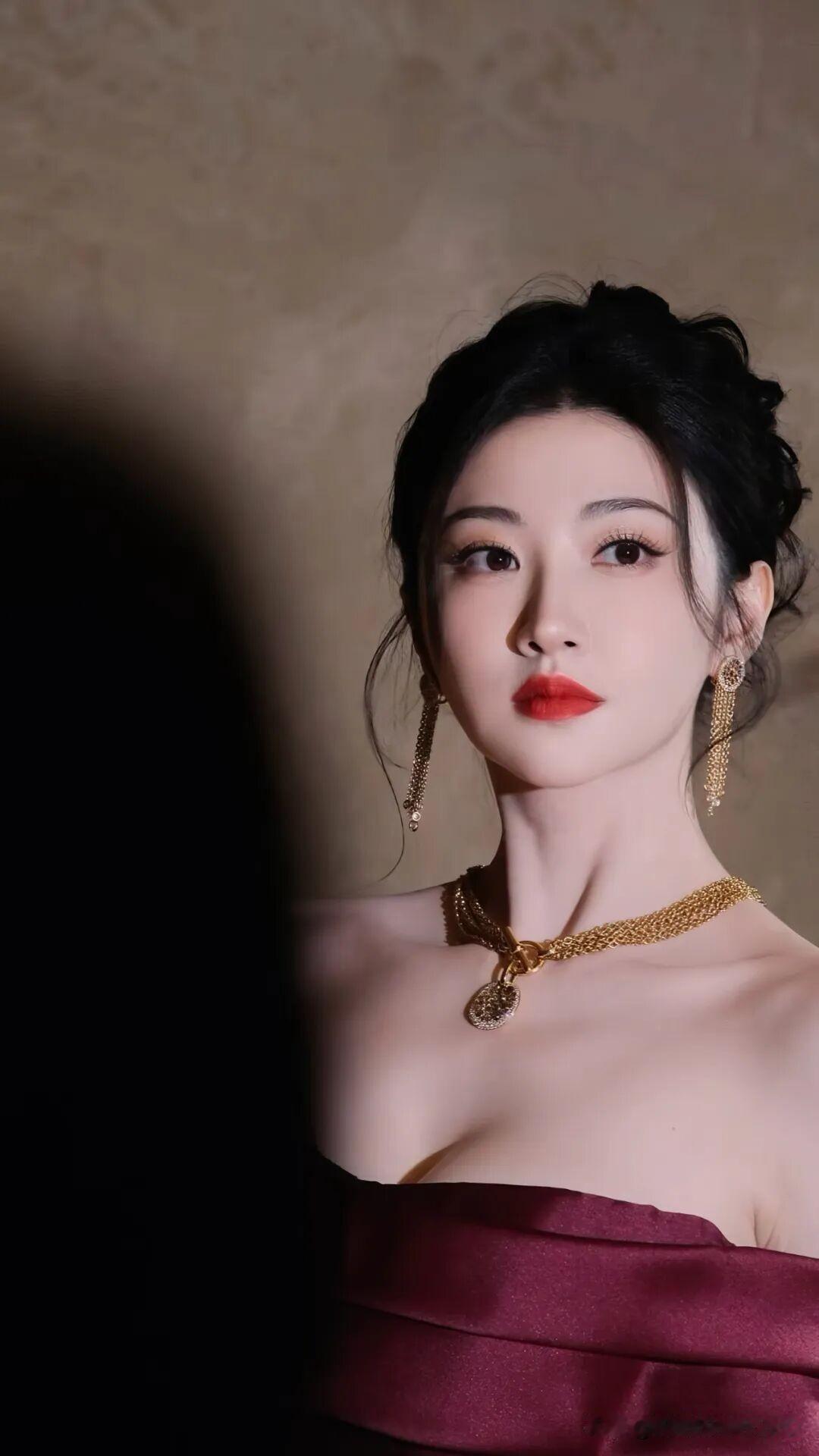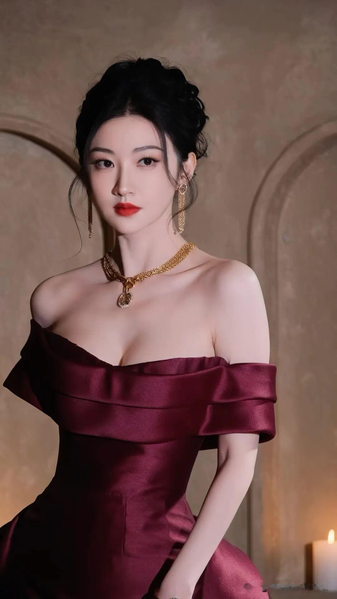 景甜这身酒红色一字肩礼服也太有复古大小姐那味儿了