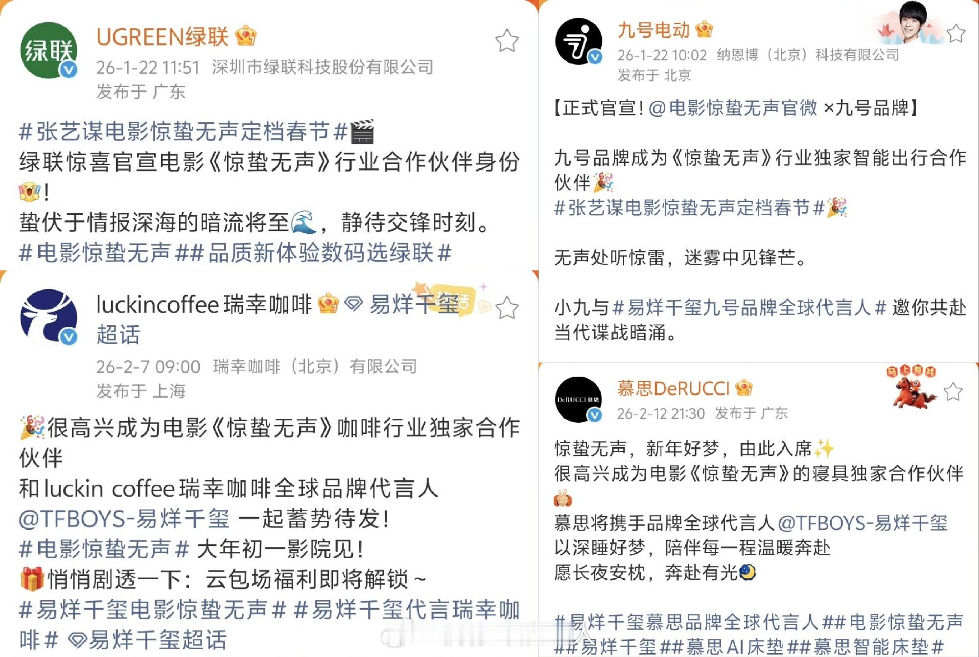 易烊千玺的含金量还在上升🔝多个代言品牌官宣与惊蛰无声合作。。粉丝真金白银冲预售、品牌方豪气包场搞联动,支持一番男主新作品《惊蛰无声》
