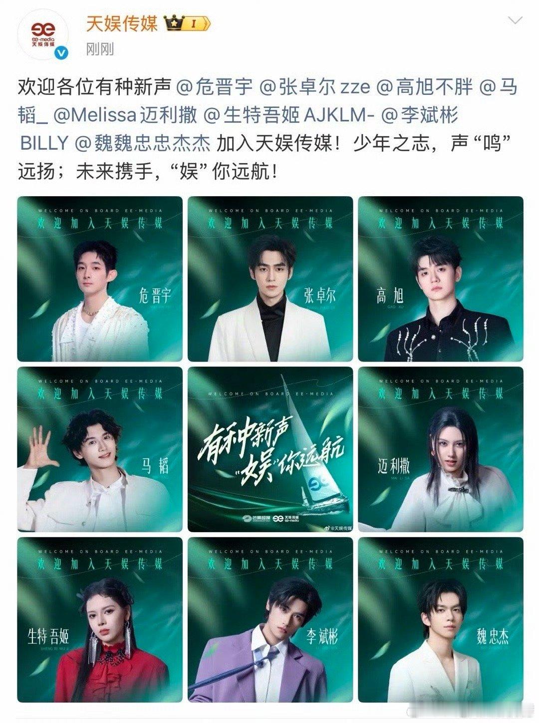 天娱签了声鸣远扬8强 难怪芒果超媒年会上他们8个站一起气场不对——原来不是普通观众,是准同事啊!天娱这波签约属于闷声干大事,等官宣的时候人家连年会都参加完了。