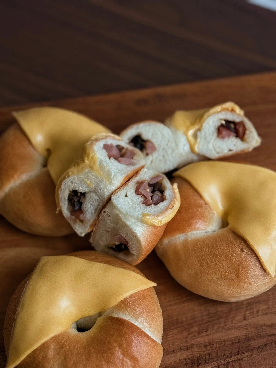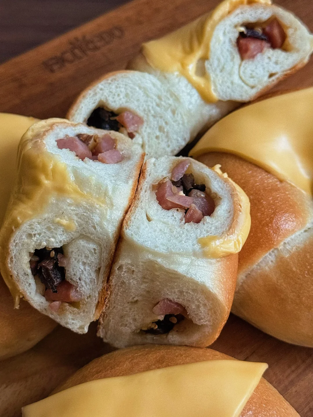 顶部放鸡枞菌➕香肠从上往下卷起来