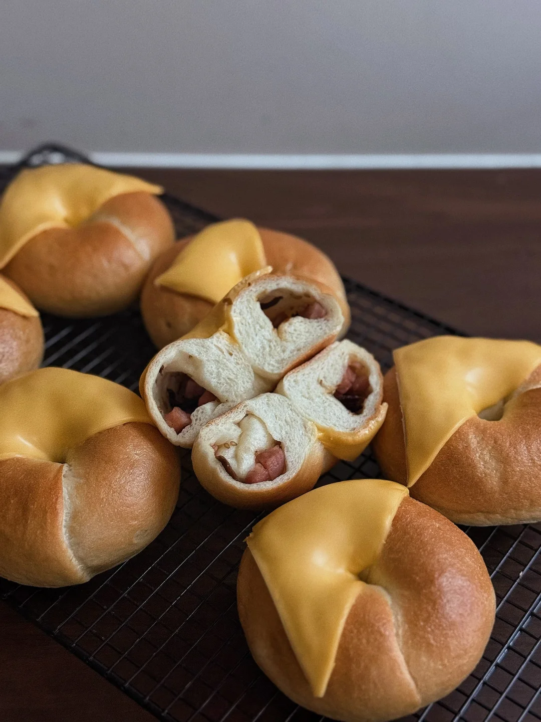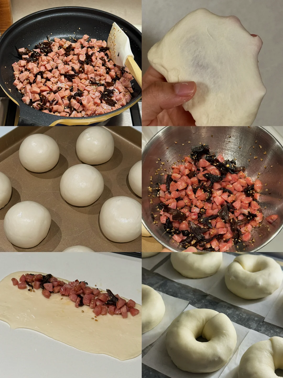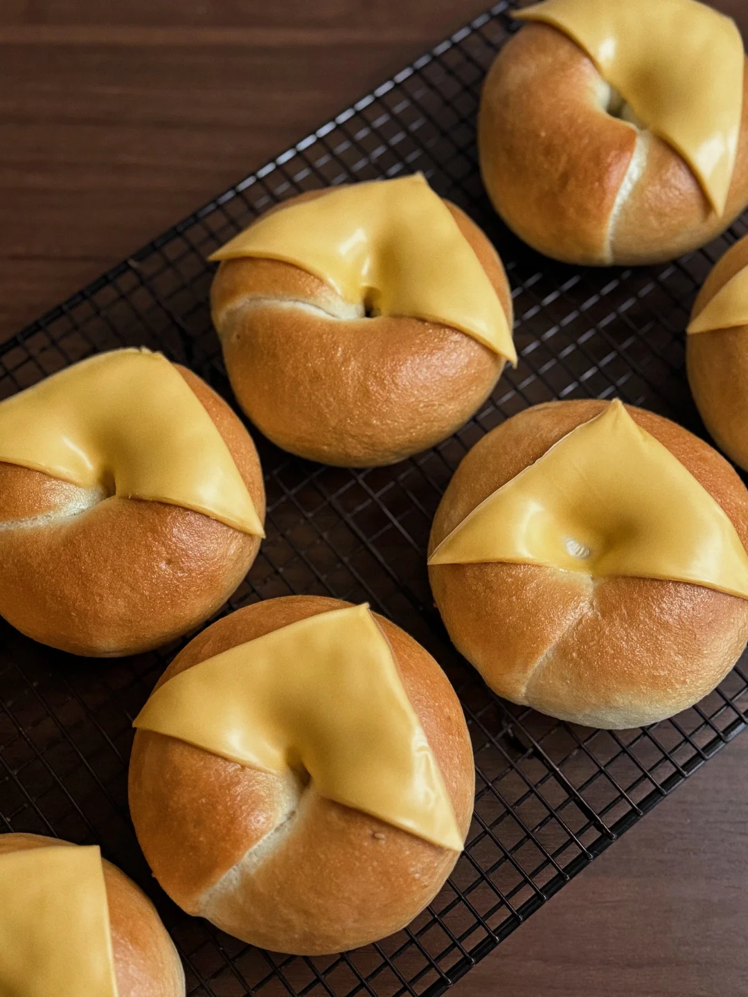 8️⃣煮好的贝果捞出来控干水分,送入提前预热烤箱