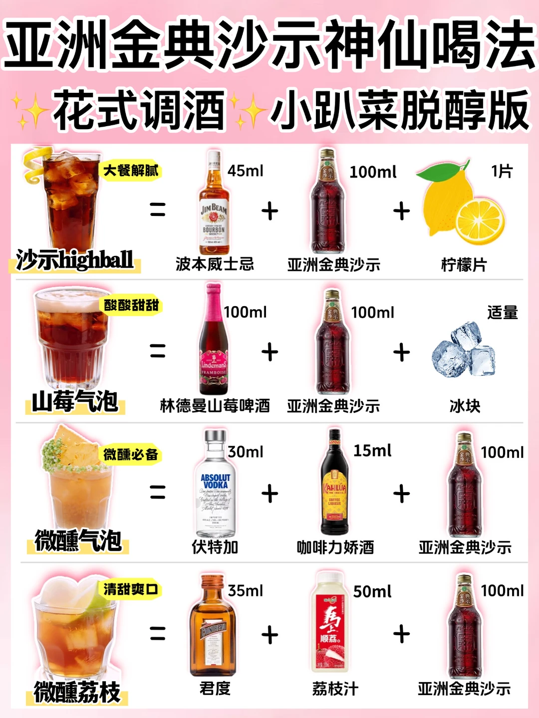 🔥马上过年了!给大家分享几款亚洲金典沙示调酒!😋材料便利店都能买到!!新手也能轻松学会!!🤩亲测简单还好喝!!过年学起来给家人朋友露一手~