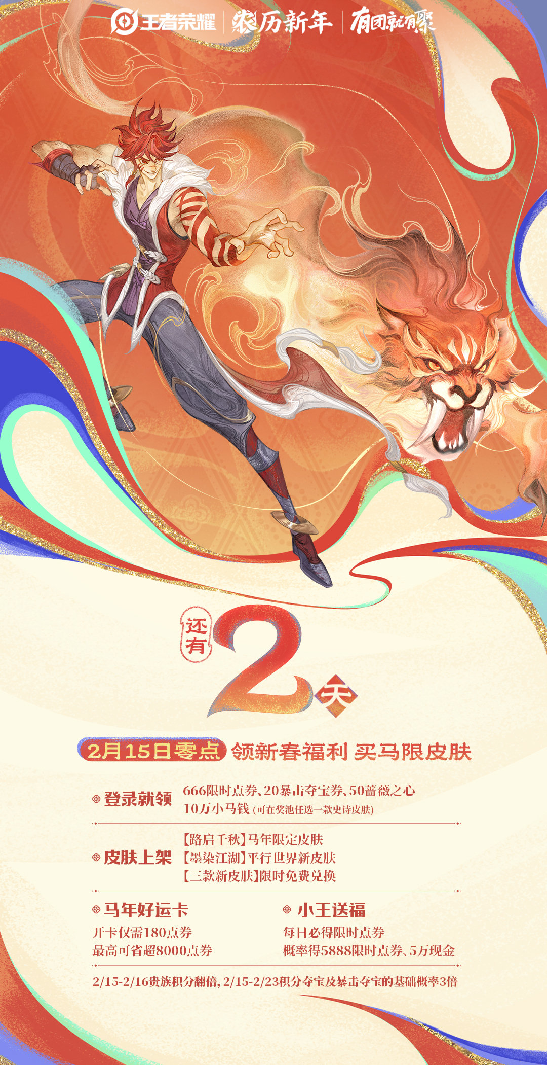 王者荣耀2月15日来王者提前过年2月15日上王者领小马钱免费限时点卷大家一定记得