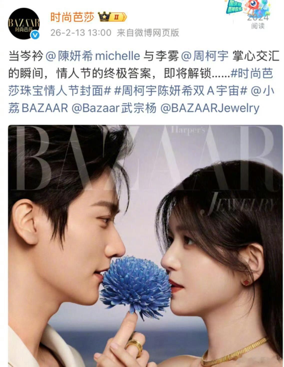 陈妍希周柯宇情人节芭莎珠宝封面,吃上了妙不柯妍的流水席!太甜了!