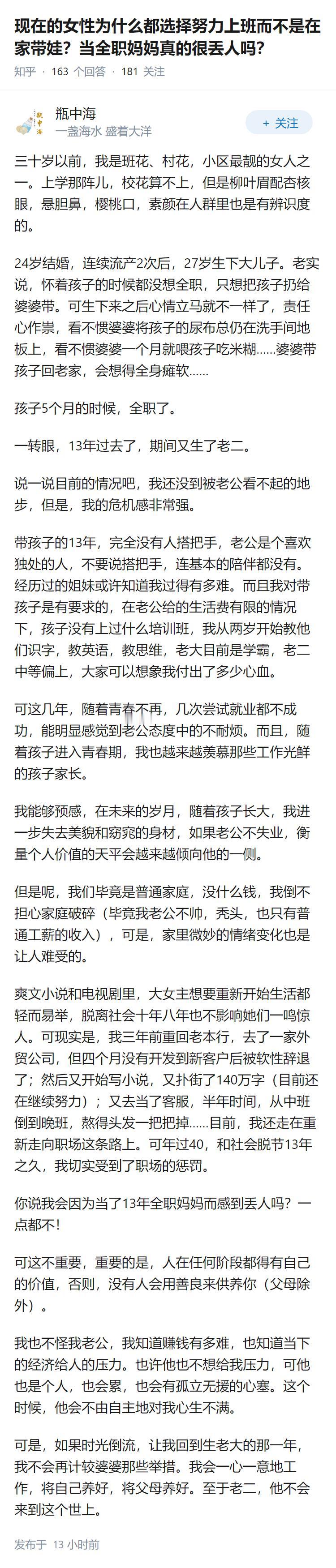 现在的女性为什么都选择努力上班而不是在家带娃?当全职妈妈真的很丢人吗?