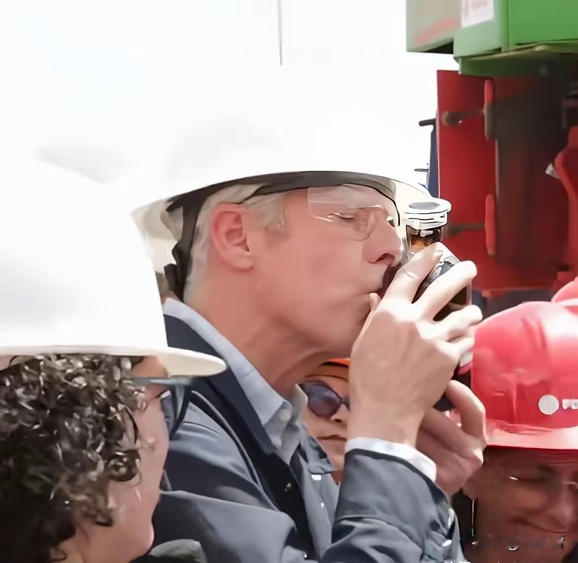 抢来的就是香?美国能源部长赖特在委内瑞拉代总统罗德里格斯的带领下参观了委内瑞拉石油开采基地,赖特一直夸张委内瑞拉的管理层在关键时刻做出正确而意义重大的选择,他还直接拿起原油样品,亲吻了几口,把旁边的罗德里格斯逗乐了。