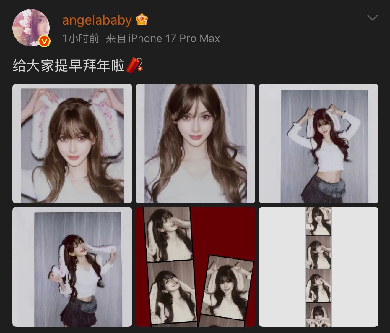 Angelababy兔耳朵撕拉片真的太可爱了,好漂亮超美