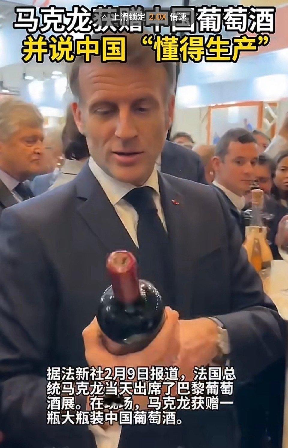 来访,我们以诚相待;走后,他却背后捅刀!小马哥这操作太打脸 法国最近有点飘了,跟着美国搞对华限制,把好好的合作关系搅得一团糟。 别以为我们好欺负,中国手里的牌硬得很! 首当其冲的,就是法国引以为傲的葡萄酒。中国完全可以对其发起反倾销、反补贴调查,让他们尝尝失去中国市场的滋味。 如果法国还不知悔改,继续在错误的道路上越走越远,那我们也可以对他们近期的一系列不友好举动,发起反歧视调查。 合作才能共赢,小马哥还是早点清醒过来,别再做伤害中国利益的事,否则,付出的代价只会越来越大! 法国