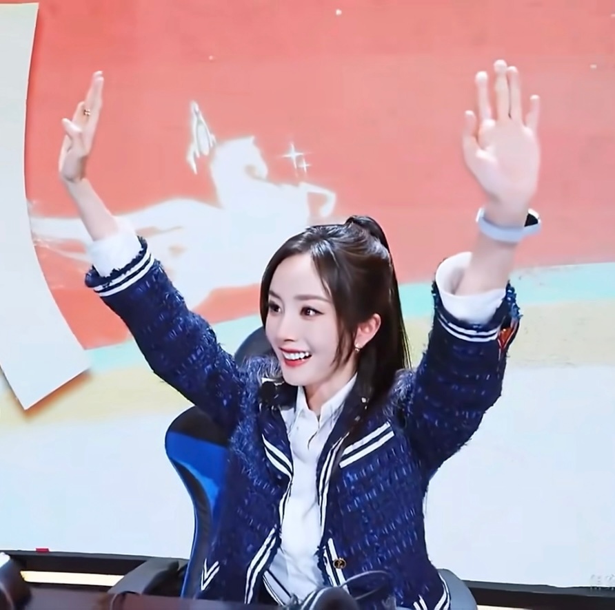 杨幂 yeah终于放假回家啦!我的心情如下~小幂举起双手召唤灵宝太可爱了吧!
