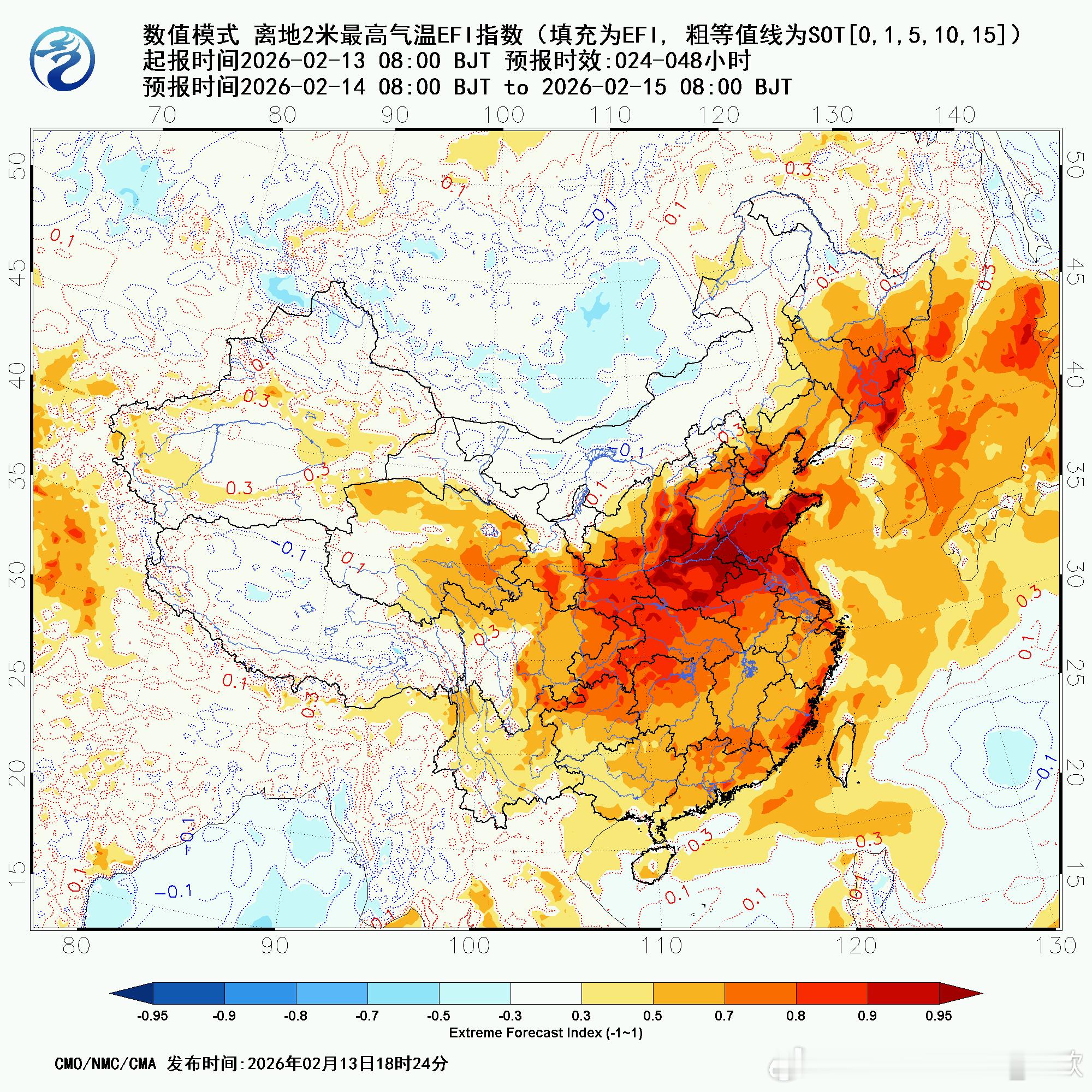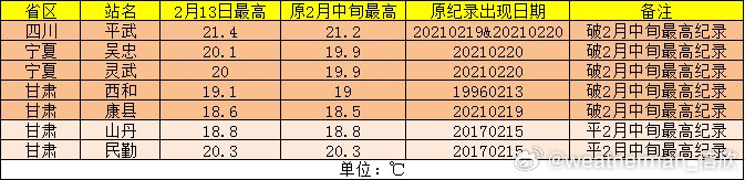 【气温破纪录】今天四川甘肃宁夏有5个站点气温打破2月中旬纪录。四川平武21.4℃、宁夏吴忠20.1℃、灵武20℃、甘肃西和19.1℃、康县18.6℃。吴忠和灵武,也打破观测史最早上20℃纪录。从最高气温极端指数看,明天山西河南山东一带,暖得同期少见,局地有可能破纪录。