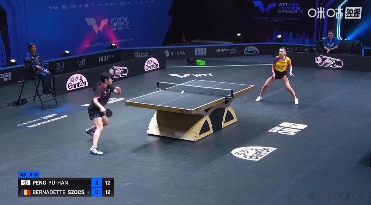 斯佐科斯🇷🇴止步32强[what], 刚刚,小妖精斯佐科斯一局未得,0-3输给了中国台北28岁小将彭郁涵,就此止步2026WTT球星挑战赛金奈站女单32强。 三局比分为:斯佐科斯🇷🇴9-11 8-11 11-13。 中国台北小将彭郁涵的技术属于正手生胶,反手防弧胶。 看来只要是防弧胶,小妖精就搞不定了,不管是刚过去的欧洲十六强杯上的高配温特,还是今天的低配防弧彭郁涵,她都打不过了[捂脸]。