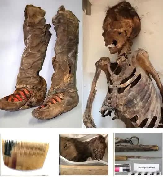 这具已有1100年历史的女性木乃伊,其鞋履和贵重文物保存完好.... 在阿尔泰山脉中,一具女性木乃伊被发现,其死亡时年龄估计在30至40岁之间,距今已有1100年之久。这一非凡的发现凸显了这些历经时间考验的鞋履,为了解那个历史时期的风俗习惯和日常生活提供了深刻的视角。 除了她那双做工精美的靴子外,考古学家还发现了一系列与她一同埋葬的文物,例如一把梳子、一把刀、一个袋子,以及一具连同马鞍的马骨残骸。这些物品,尤其是马和马鞍的存在,表明这名女性可能享有很高的社会地位,因为这些物品通常与该地区游牧文化中的权贵人}物联系在一起。历史