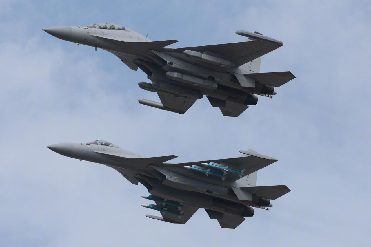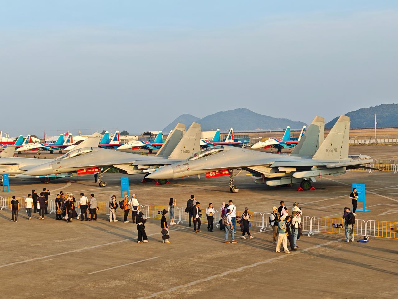 苏霍伊侧卫家族大聚会,可能以后再也没有机会看到这么多子孙聚在一起了。 图1:歼十六和歼十六电 图2:SU-30SM 图3:SU-35S,勇士队那次来了六架 图4:SU-30SM和SU-35S同框 图5:歼十五电滑,产量稀少的珍稀品种 图6:歼十五弹,最强重型舰载战斗机 图7:歼十五电滑和歼十五弹同框 图8:歼十五弹在降落 图9:歼十六低空通场 图10:歼十六电,奢侈品。
