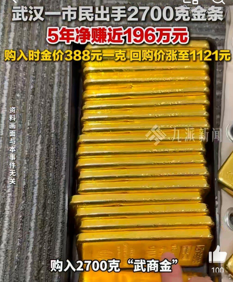 男子出手2700克金条5年净赚196万有钱人啊,钱流向不缺钱的人,向来如此的, 感觉有钱人赚钱不要太容易