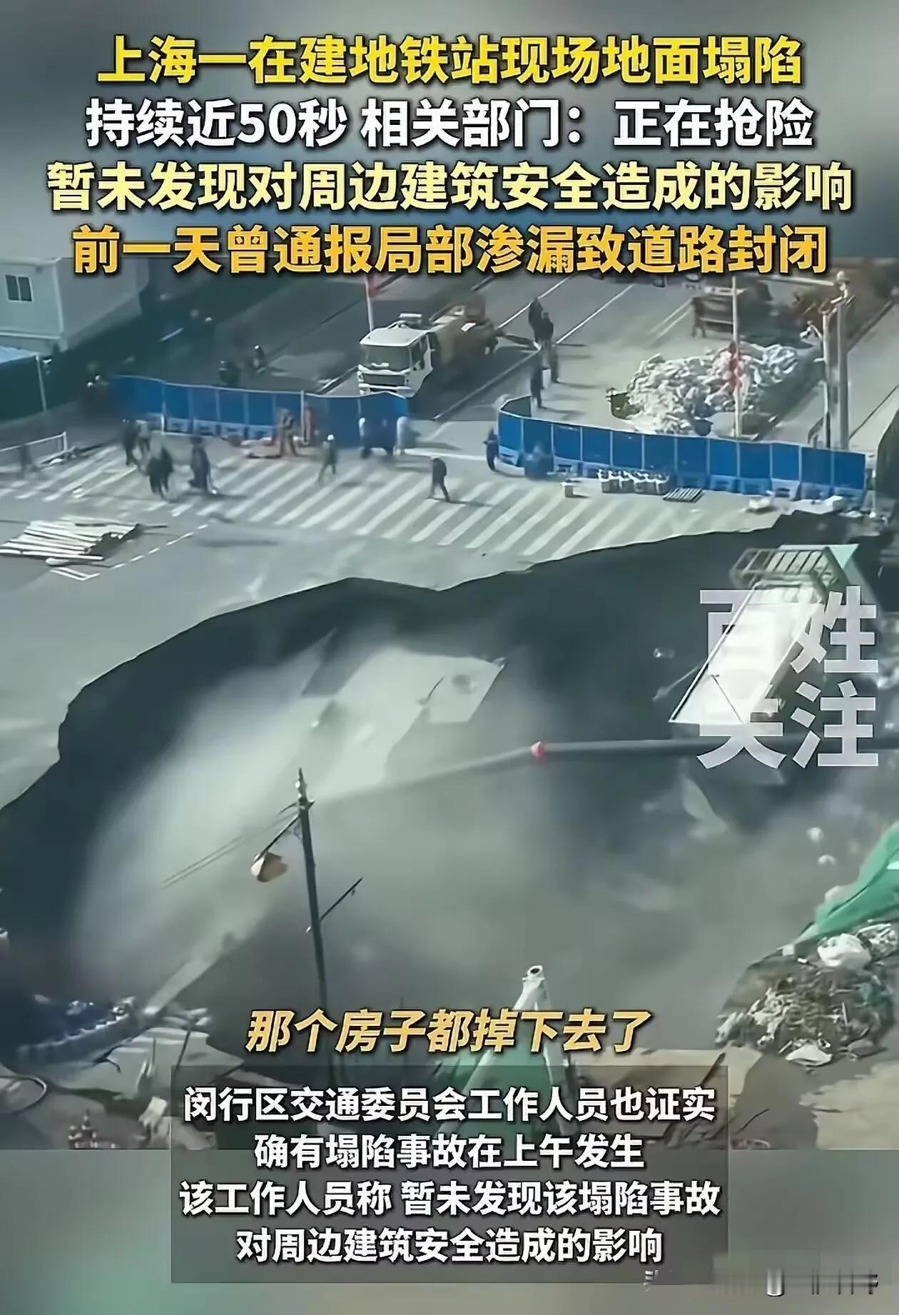 上海七莘路地铁站地面塌陷事件! 现在最慌的估计不是施工方, 也不是监理工程师,而是参与这次项目地质勘查和风险评估的相关单位。 路人只看到路面塌了一个大坑,只有真正懂行的人才明白,地下工程最怕的就是源头出错。勘查这一步走歪了,后面再怎么补救,都很难挽回局面。很多事故看似突发,其实早在最初的勘探阶段,就已经埋下了伏笔。 上海本就是软土地基,地下水位高、土质松散,就像泡在水里的豆腐。七莘路站又是深埋站点,地下三十多米全是高压含水层,施工风险本就远高于普通路段。在这种地质条件下,任何一点疏忽,都有可能被无限放大。 行内人都清楚,盾构接收口本身就是事故高发区域。止水结构只要稍有瑕疵,地下水就会裹挟泥沙不断涌出,慢慢掏空地下,路面塌陷只是时间问题。这种隐患隐蔽性极强,等肉眼能看出来时,往往已经难以控制。 这个点位早就被列为高风险区段,地下防渗结构没能彻底隔断含水层,隐患其实早已埋下,只是一直藏在地下,没有暴露在大众视野里。风险被一再忽视,小问题拖成大险情,最终以地面塌陷的方式爆发出来。 地质勘查报告从来不是走过场的资料,每一组数据都必须真实标注地层、水压和风险点位,任何一点偏差,都可能带来无法预料的后果。它是工程的指南针,也是安全的生命线,容不得半点水分和敷衍。 很多工程出现问题,表面看是施工不规范、监管不到位,根源往往在前期勘查没有把真实风险摸透,从一开始就留下了致命的安全漏洞。源头失真,后面所有的流程,都可能建立在不靠谱的基础之上。 风险评估不该是盖个章就束之高阁的形式,更不能是纸上谈兵。真正有效的评估,是能提前预警、及时防控,守护每一个普通人的出行安全。它要能指导现场,而不是应付检查,更不能成为事后免责的工具。 这次从渗漏到塌陷不到一天时间,万幸没有造成人员伤亡。可越是这种有惊无险,越让人脊背发凉,越该彻查到底是哪个环节出现了失守。如果每一次险情都靠运气化解,那迟早会出现无法挽回的悲剧。 地面上的坑洞可以快速回填修复,但责任链条里的漏洞,必须彻底补齐。勘查是否严谨、评估是否务实、管理是否到位,都该给公众一个明确交代。城市建设不能用试错的心态,更不能拿安全赌概率。 我们日常出行的安全感,从来都不是凭空而来,而是来自每一份真实可靠的数据、每一个认真负责的环节。少一分敷衍,城市就多一分安稳踏实。每一个岗位守住底线,大家脚下的路才会真正平稳。 各位读者你们怎么看?欢迎在评论区讨论。城市道路塌陷