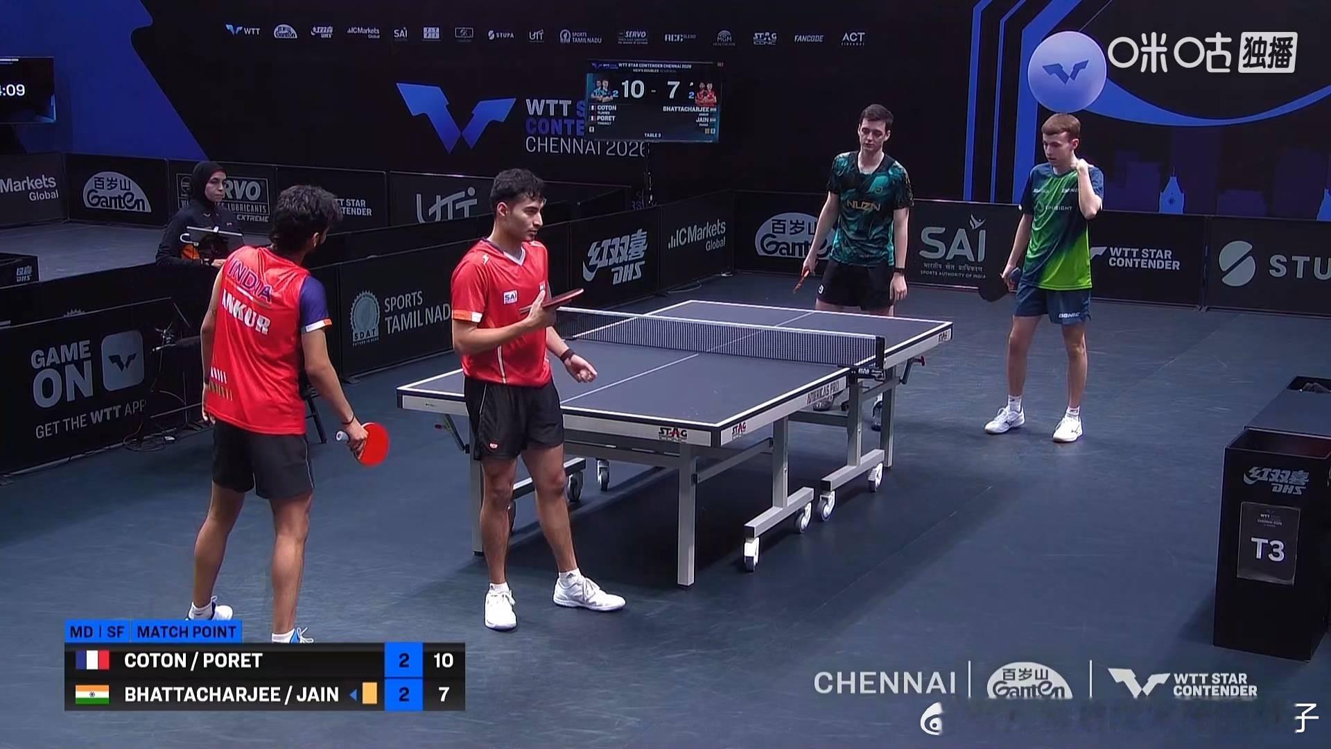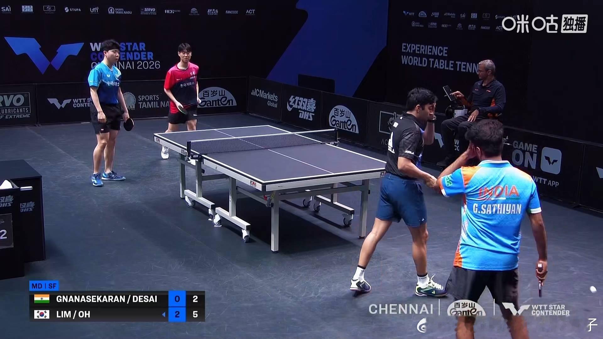 林钟勋吴晙成3比0加纳纳塞卡然德赛(2,3,10)科顿泊雷特3比2巴塔查吉贾恩(-7,-10,8,8,8)晋级2026WTT金奈球星挑战赛男双决赛决赛:林钟勋吴晙成🇰🇷VS科顿泊雷特🇫🇷