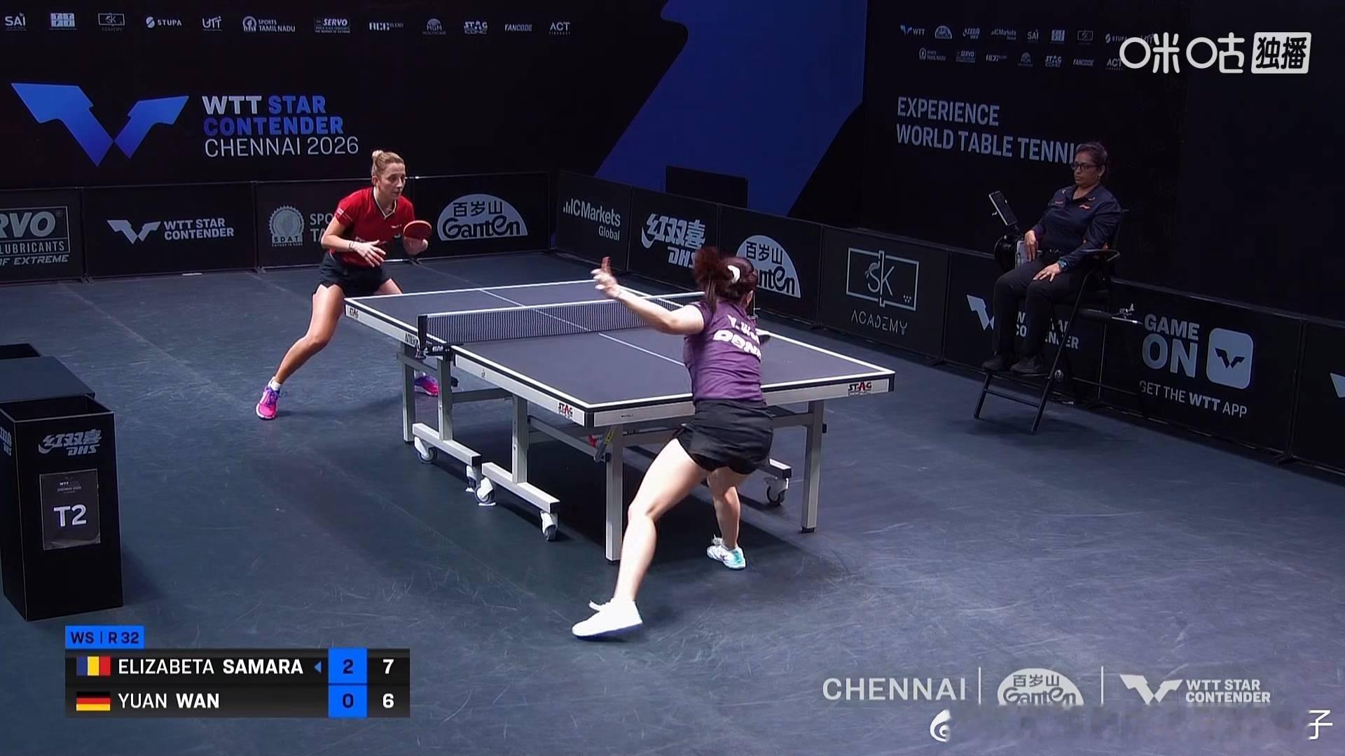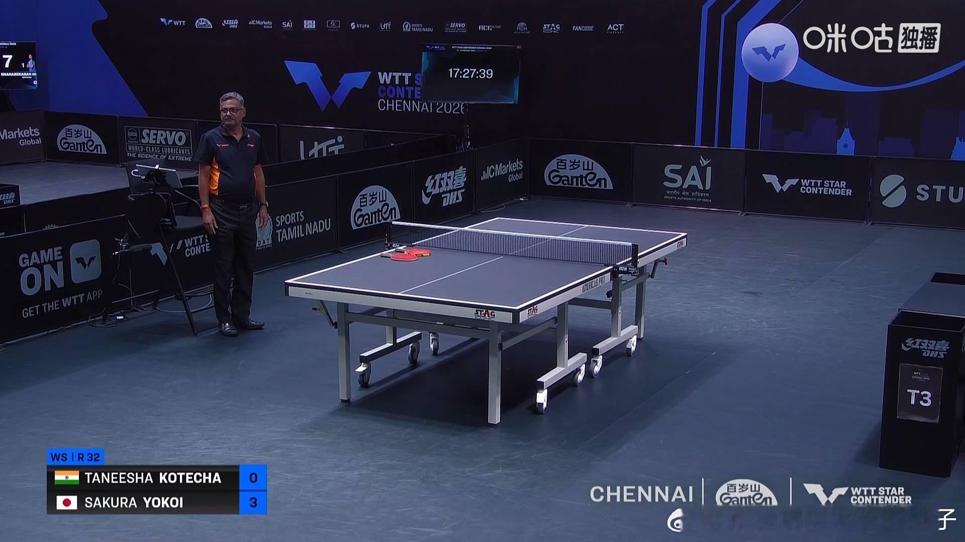 加纳纳塞卡然3比1林钟勋(7,-9,9,11)萨马拉3比0万远(8,8,7)横井咲樱3比0科特查(6,4,5)塞弗里德3比0格拉尔多(3,7,7)晋级2026WTT金奈球星挑战赛单打十六强下一轮:横井咲樱🇯🇵VS金娜英🇰🇷、塞弗里德🇫🇷VS朴康贤🇰🇷