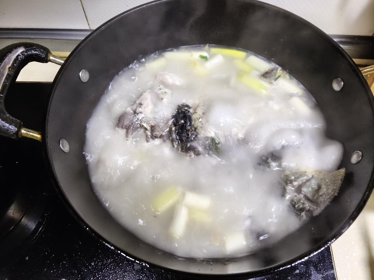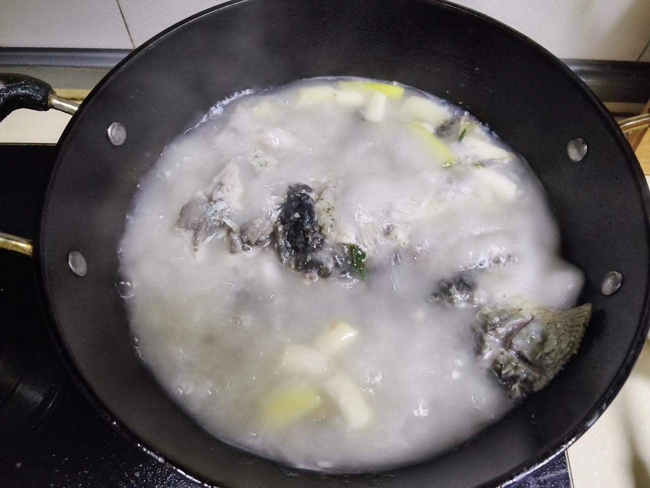 别看三斤的鱼切了头。其实还有2/3,等把鱼汤炖好以后,鱼都已经缩的很小了,几乎都