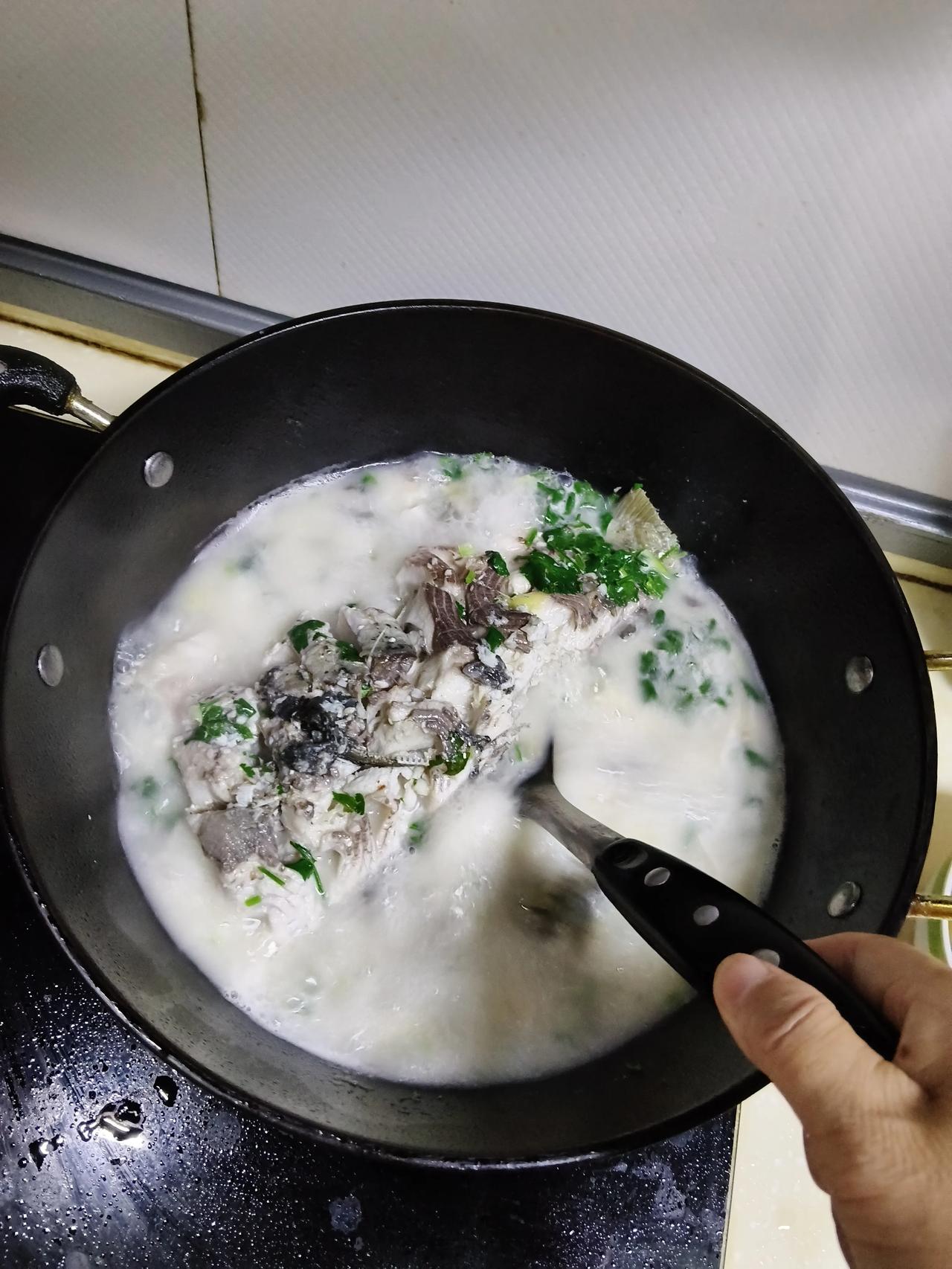 别看三斤的鱼切了头。其实还有2/3,等把鱼汤炖好以后,鱼都已经缩的很小了,几乎都没有多少鱼肉了。 不过说实在的,这个鱼奶白色的鱼汤真的很好喝。 我们不讲究过不过年,想吃什么就做什么,管他是什么节日呢。