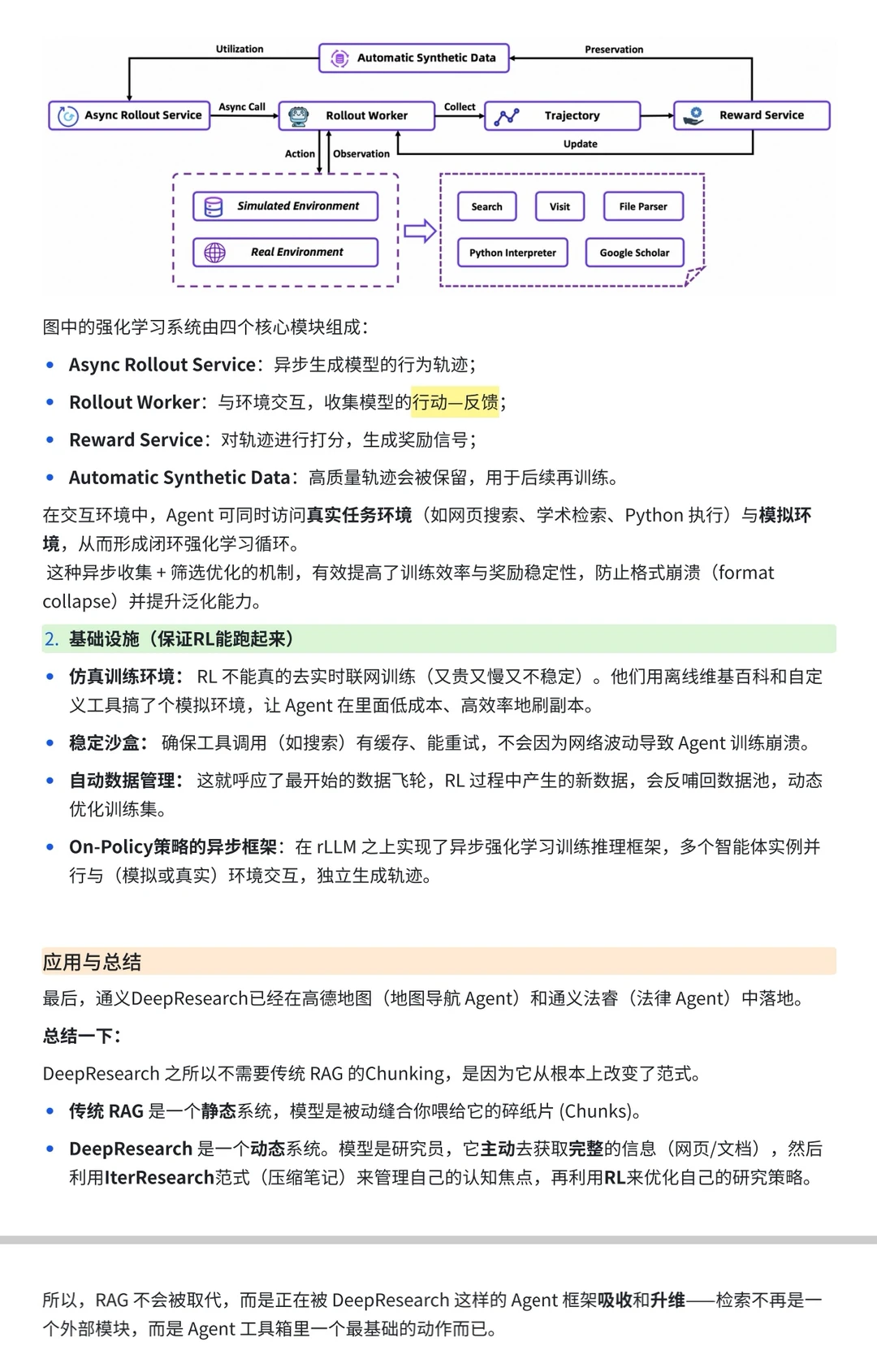 长上下文(Long Context)让模型能读得更多,传统 RAG 让模型能读得准,而 DeepResearch 其实在验证一条新路:检索是模型自己行动的一部分,而不是一个外部的外挂模块。