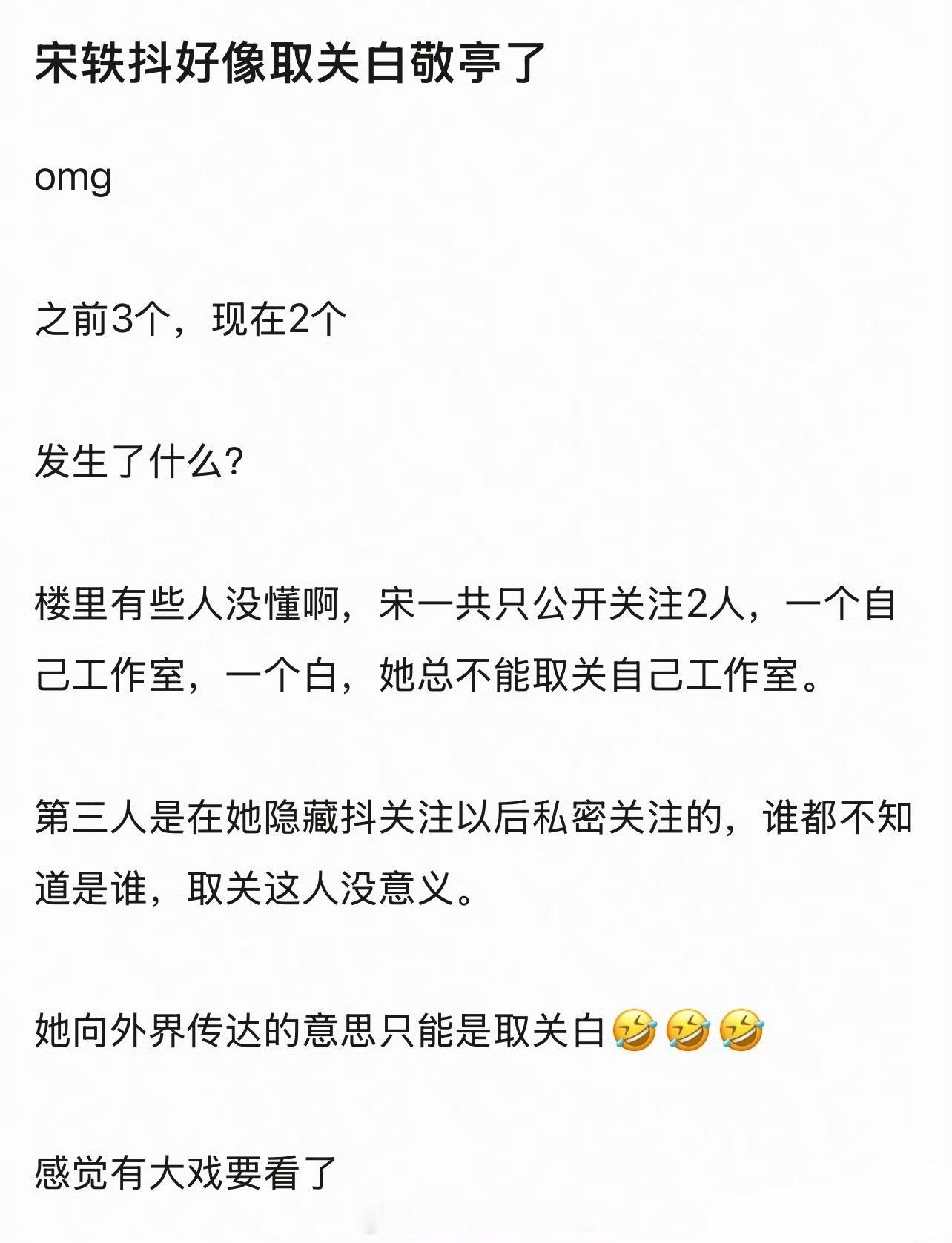 网友说宋轶好像取关白敬亭了,有大戏要看了吗
