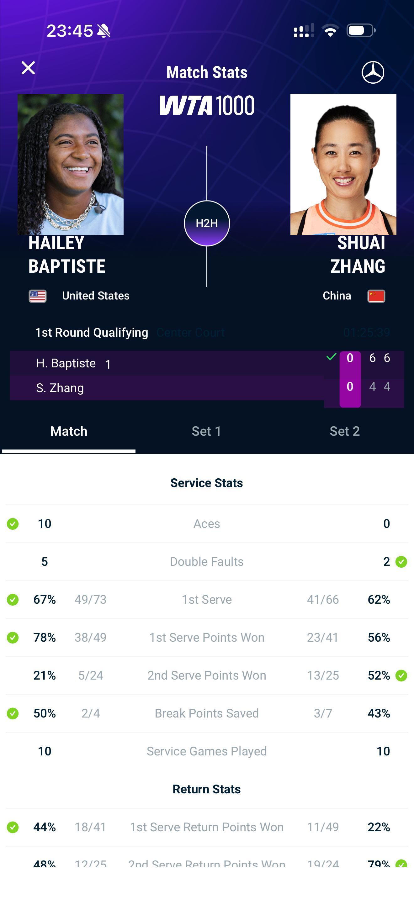 迪拜1000赛资格赛首轮,张帅4比6、4比6不敌资格赛头号种子巴蒂斯特,无缘第二轮。网球talking大会