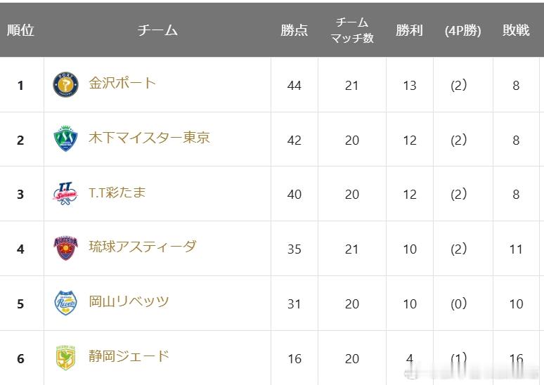 冈山现积31分排名第五,比第三位同战20场的彩玉少9分,比第四位少战1场(21场)的琉球少4分。包括本周日的比赛在内,冈山的T联赛常规赛还剩5场比赛。