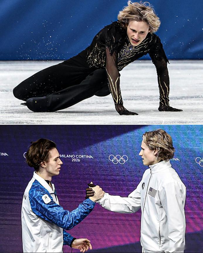 短节目排名第一的美国选手马里宁自由滑崩溃,最终获得第八名。短节目第二的法国选手萧因法也崩了,最终获得第七。