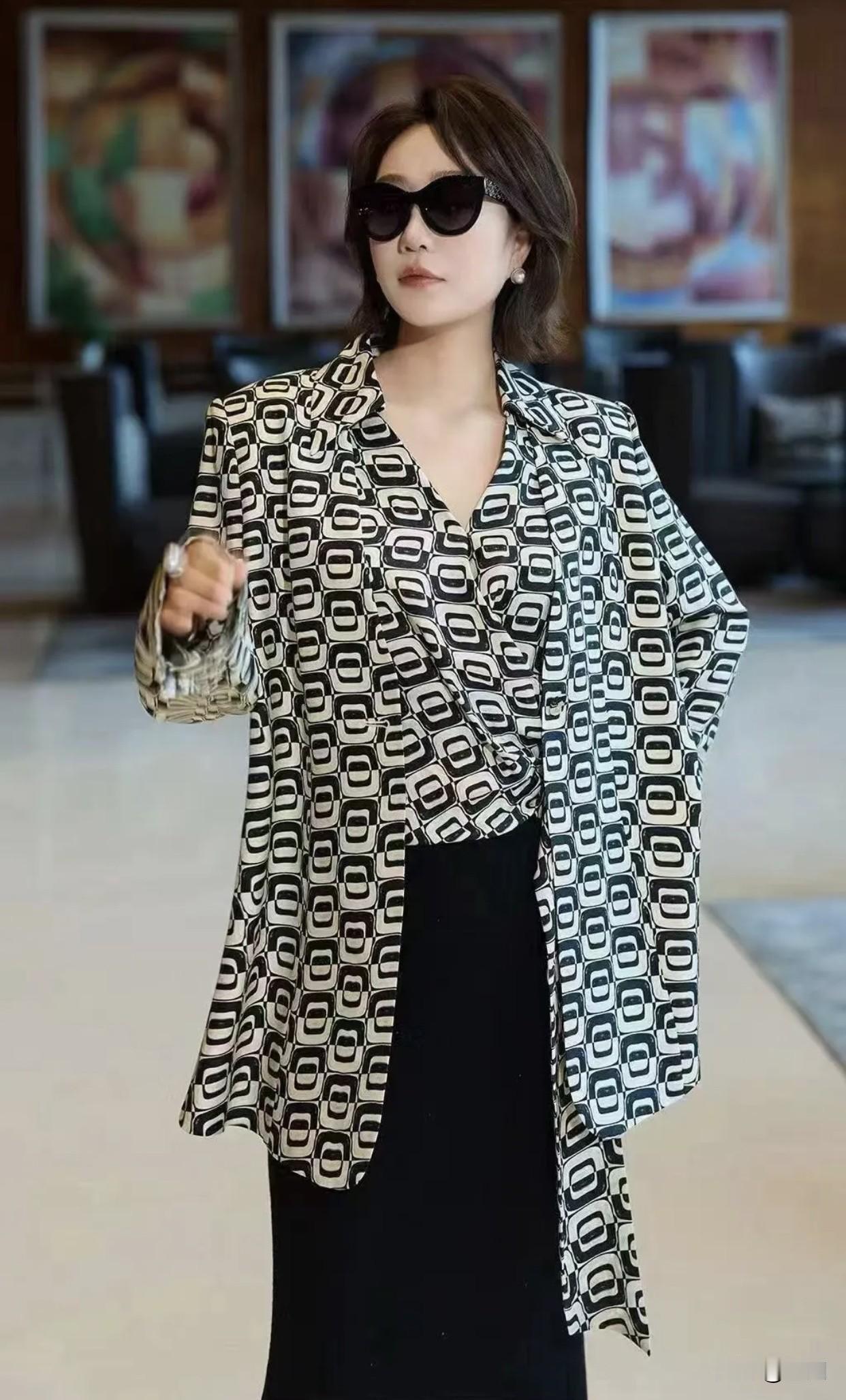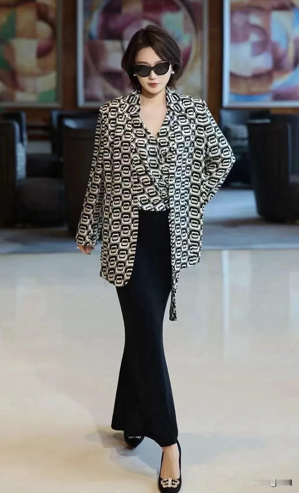 “东方美”是怎样的美?都市女郎风范,黑白几何印花外套搭配黑色长裙,尽显时尚与优雅!👗👠