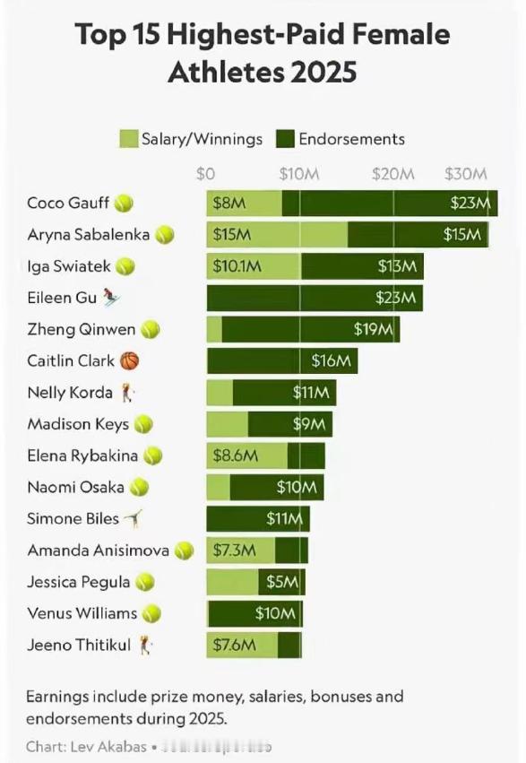 谷爱凌是本届冬奥会收入最高的运动员,谷爱凌郑钦文闯入全球女运动员收入前5,2月10日,米兰冬奥会正在进行中,商业媒体福布斯发布了本届冬奥会运动员收入排行榜前五名,谷爱凌以2300万美元的收入排名第一。 谁也没想到,本届冬奥吸金王居然还是谷爱凌,而且领先优势大到离谱。 福布斯数据显示,她以2300万美元的年收入稳坐冬奥榜首,比排名第二的美国冰球明星奥斯顿·马修斯还多出300万,堪称冰雪赛场的“商业天花板”。 更有意思的是,这份巨额收入里藏着一个反差感极强的细节:只有10万美元来自赛事奖金,剩下的99%全是商业代言所得。 从安踏、瑞幸等国民品牌,到路易威登、蒂芙尼等奢侈大牌,她的代言矩阵横跨8个领域,即便去年参赛不多,商业号召力依旧丝毫不减。 而赛场上的她也没掉链子,米兰冬奥坡面障碍技巧赛摘银,后续还要冲击U型场地和大跳台卫冕,这份实力,正是品牌方最看重的底气。 如果说谷爱凌是冰雪赛场的“常青吸金王”,那郑钦文就是网球领域的“逆袭黑马”。 全球女运动员收入前五的榜单里,前三全被网球选手包揽,而郑钦文以2060万美元挤入第五,和谷爱凌一起,让中国面孔占据了榜单两席,这在以前几乎是不敢想的事。 郑钦文的吸金之路更显不易,去年她因手肘伤势缺席美网等多项大赛,不少人担心她的商业价值会下滑,可她用实力打破了质疑——伤愈复出后首战多哈站,就以逆转姿态获胜,即时排名稳步回升。 她的收入结构和谷爱凌颇为相似,160万美元来自赛事奖金,剩下的1900万全是代言收入,迪奥、劳力士等大牌纷纷续约,看中的就是她身上那股不服输的韧劲。 可能有人会疑惑,这两位姑娘凭什么能在欧美选手主导的吸金榜里脱颖而出?答案其实很简单:没有捷径,全靠实力铺路。 谷爱凌四年前北京冬奥一战成名,如今依旧保持顶尖竞技状态;郑钦文从青少年赛场一路拼杀,成为继李娜之后中国网球的新希望。 不同于欧美选手大多依赖赛事奖金,谷爱凌和郑钦文的商业价值,早已跳出赛场局限,成为国际品牌开拓中国市场的重要桥梁。 她们用22岁的年纪,证明了中国女运动员不仅能在赛场上拿奖牌,还能在商业舞台上站稳脚跟,这份荣耀,远比收入数字更动人。 目前米兰冬奥赛事仍在继续,期待谷爱凌再创高光,也盼着郑钦文在网球赛场一路高歌,续写中国体坛的惊喜。