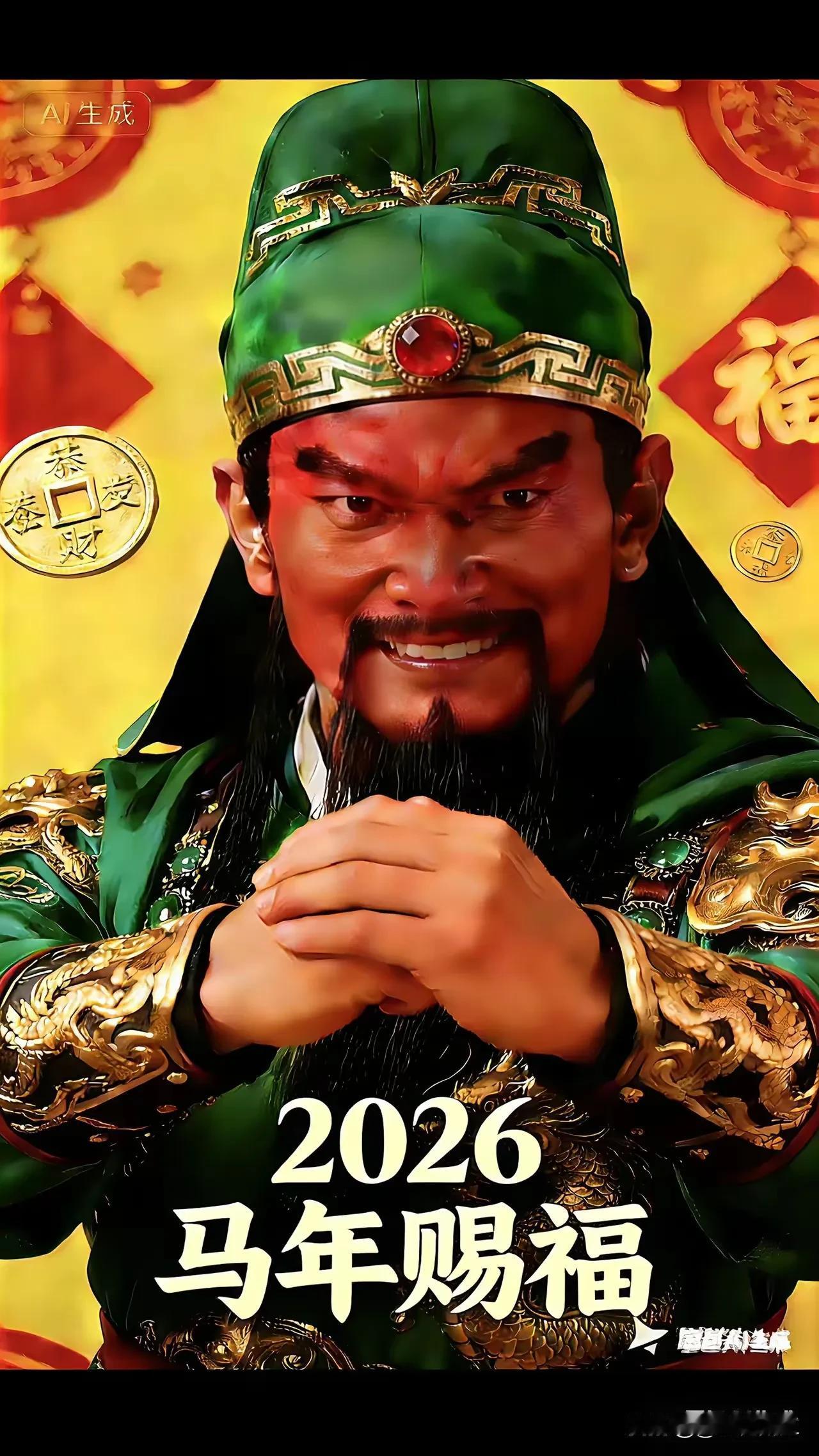 恭迎关圣帝君,马年赐福降祥! 圣令昭昭,护佑2026: 凭忠义之心,策马扬鞭,驰骋万里锦绣程; 借神威之力,驱邪避煞,除却世间烦恼尘。 愿你: 小人见你绕道,贵人与你并肩; 脚下皆是坦途,心中尽是如愿。 关二爷在上,佑你马到功成,富贵安康! 关圣帝君在此赐福,要不要画一张财神画像,把这份马年好运迎进门?