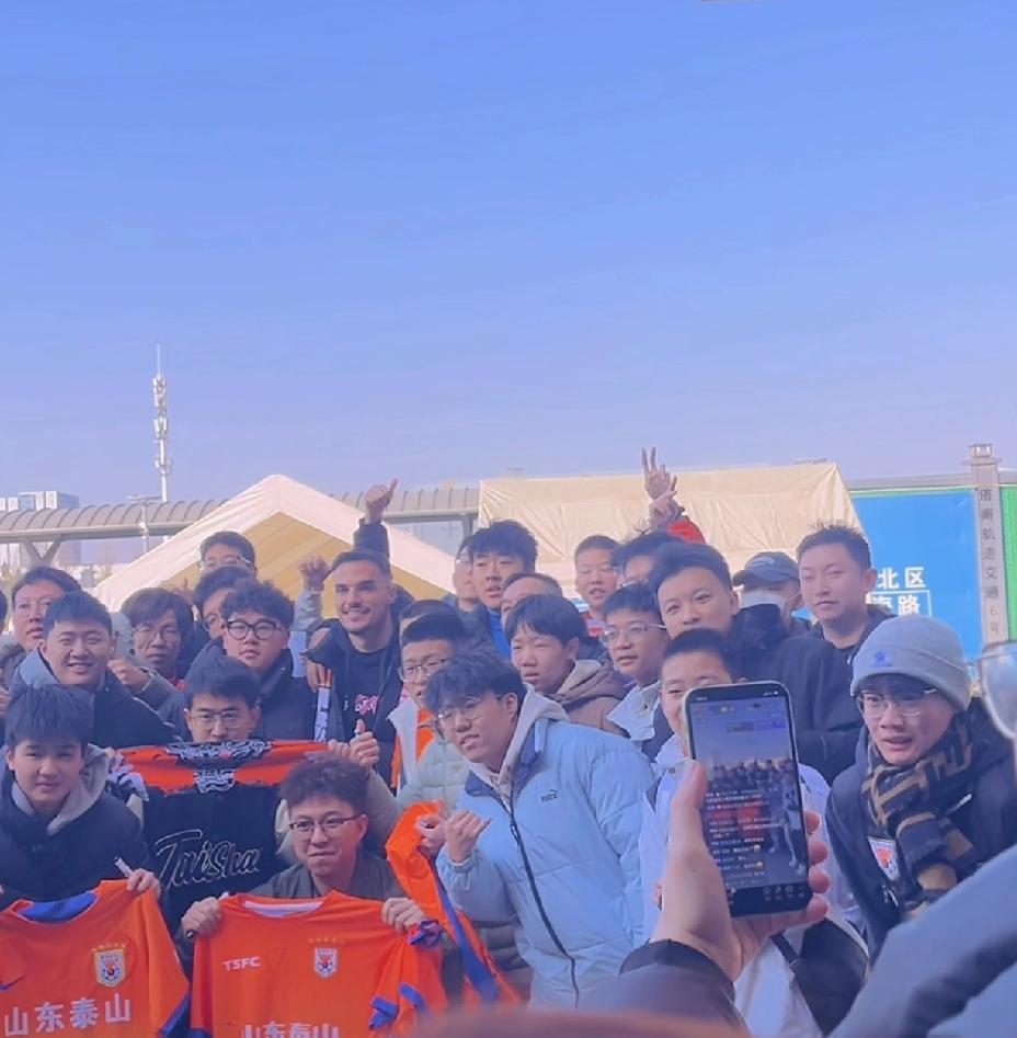 好饭不怕晚,阿尔瓦罗今天上午抵达济南。 阿尔瓦罗一现身,现场不少球迷将他包围,签名、合影,一样不少。 不过走在人群中,1.87米的阿尔瓦罗并不显高,与其他人并没有多少区别。直播间里的球迷也说:看着也不高啊! 阿尔瓦罗还与球迷集体拍了一张合照。 随后与工作人员上车驶离。