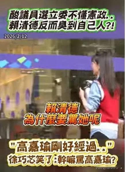 赖清德称“议员转战立委不懂宪政” 徐巧芯酸为什么骂高嘉瑜 高嘉瑜无辜“躺枪”尴尬路过 因“台行政机构版”军购条例审查事宜,赖清德于2月11日召开记者会,呼吁在野党派共同付委审查。期间,他特别提及本届“立委”中有许多成员来自“议会”系统,并指出地方工作事项、层级与“立院”、“行政机构”等最高民意殿堂的运作存在差异。 此番言论迅速引发政治风波。国民党“立委”徐巧芯对此提出严厉批评,直指赖清德的言论逻辑矛盾。徐巧芯指出,民进党内部包括黄捷、吴沛忆、李坤城等多位“立委”均是议员转任,质疑赖清德是否在变相批评自家同志,甚至反问“难道赖清德很讨厌黄捷?” 徐巧芯进一步统计并强调,民进党内部约有20多位“立委”拥有议员背景。她特别点名前民进党籍“立委”高嘉瑜,指出高嘉瑜同样是议员出身,且目前正准备回锅参选台北市议员。 就在徐巧芯提及高嘉瑜名字时,高嘉瑜本人恰好经过采访现场。面对这突如其来的“流弹”,高嘉瑜仅露出尴尬的微笑,未作停留便随即离开。这一幕被媒体捕捉并传播后,引发网友热议,有网友调侃高嘉瑜“太衰了”,正好路过遭“流弹”击中。