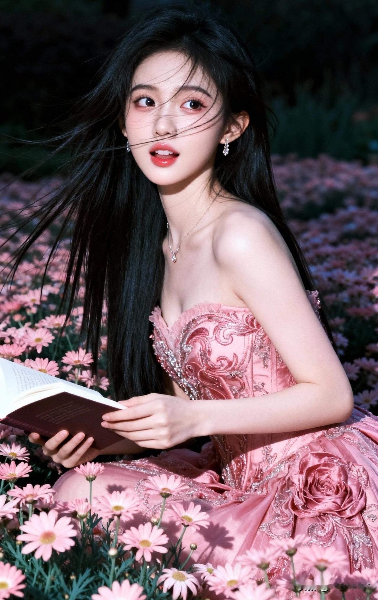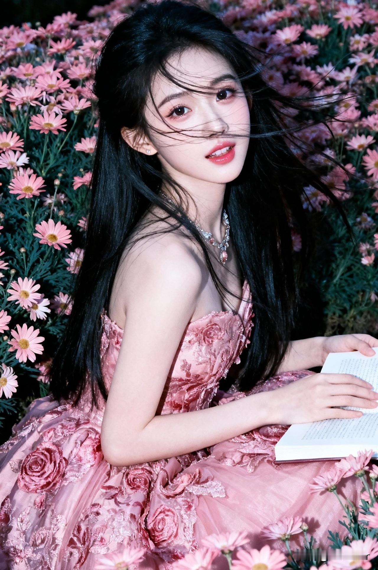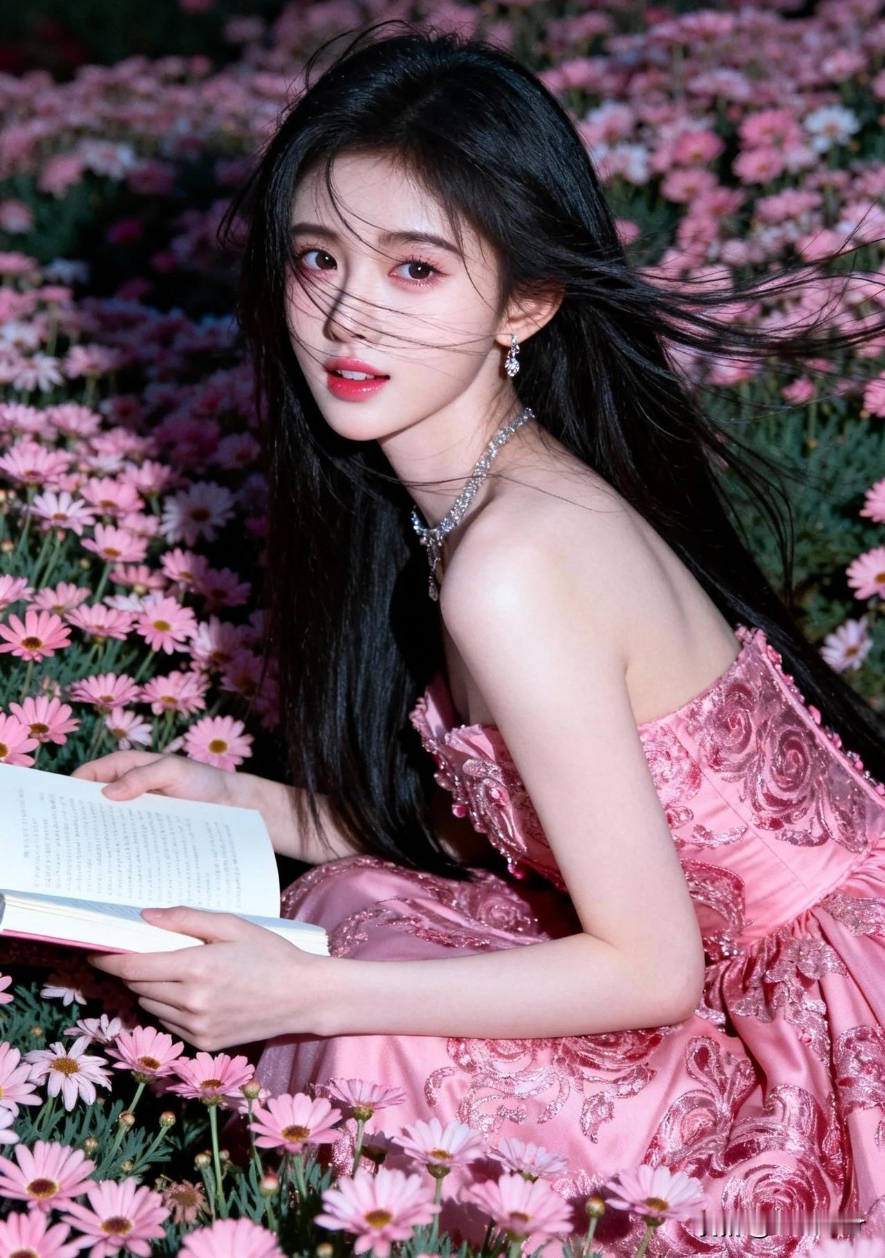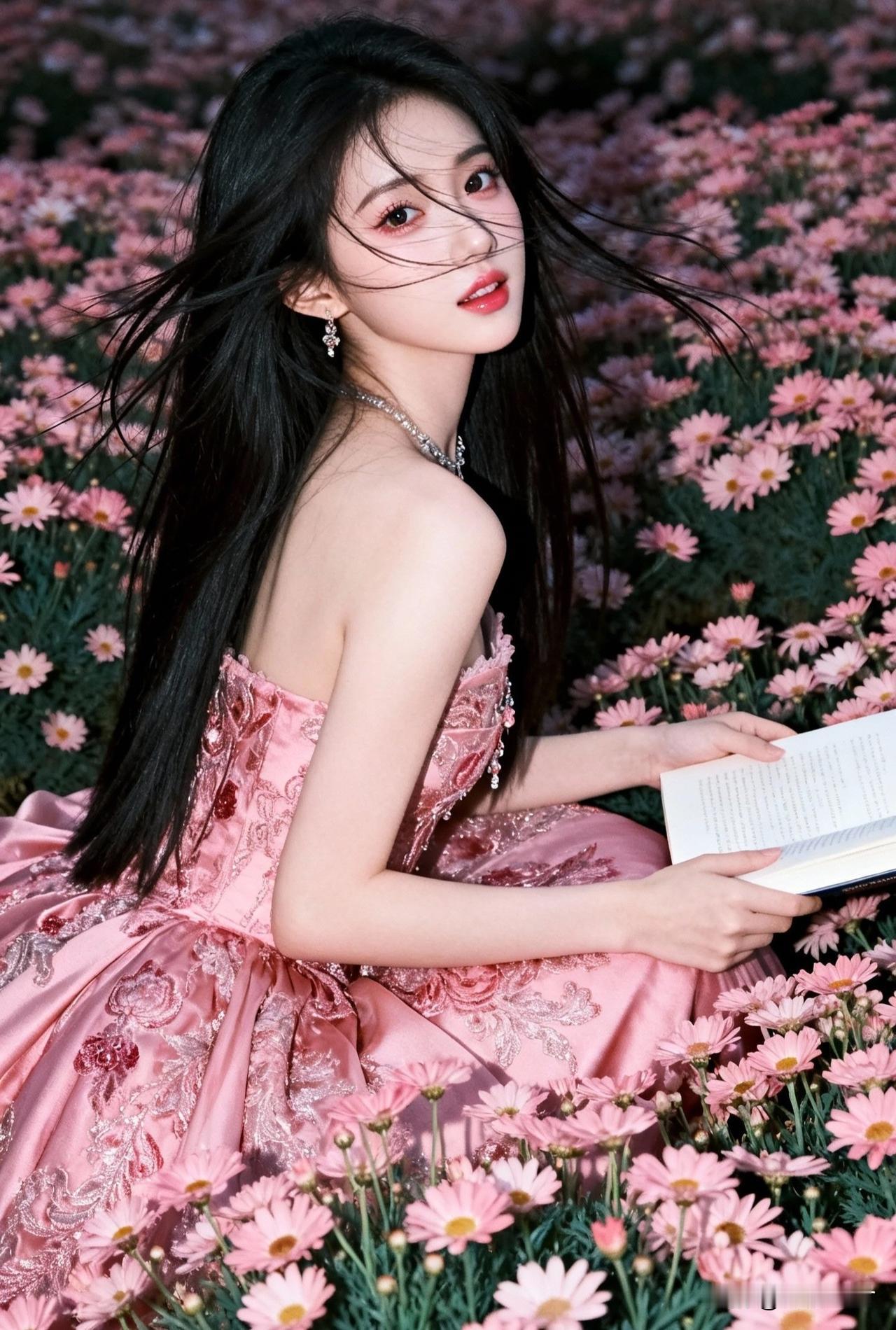 粉裙少女与花海相映,梦幻而浪漫
