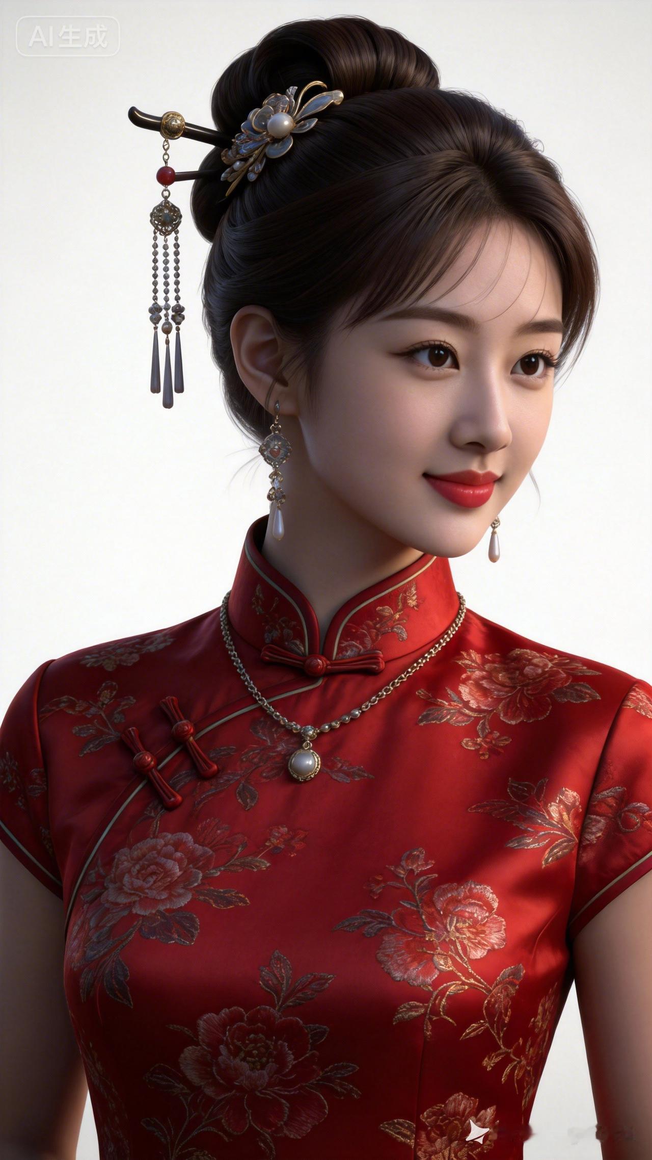 中国旗袍,古典韵味。雍容华贵,东方风情。贴身裁剪,线条流畅。玉珠圆润,展