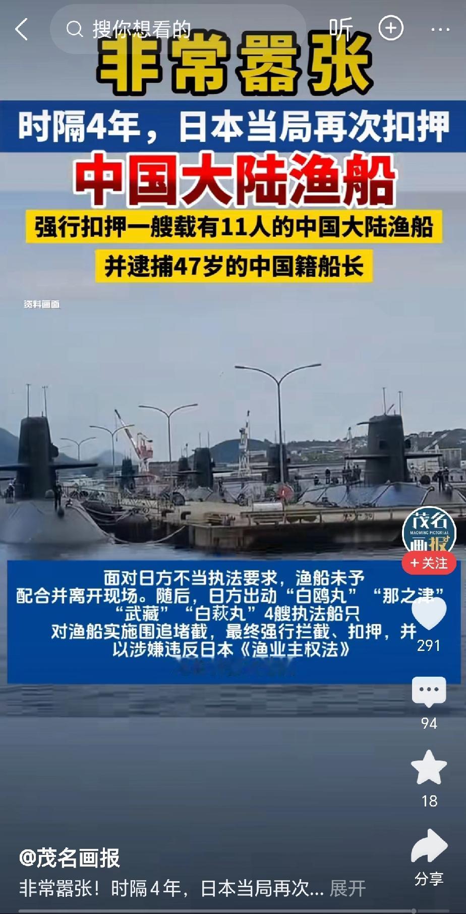 敢干,别人才会怕你! 12日,日本当局时隔四年,再次扣押了我方渔船,且逮捕了渔船上的工人和船长。 日本这次干的这事儿,根本就不是什么所谓的渔业执法,说白了就是赤裸裸的挑衅,是右翼政府在搞政治碰瓷,借着扣押渔船装强硬,转移国内的矛盾,还想试探中国的底线,真把自己当根葱了? 日本这套路,可不是第一次玩了,以前就好几次扣过咱的渔船,抓过咱的船长,每次都找些乱七八糟的借口,什么违反它家的破法律,什么进入它的专属经济区。 那片海域本来就是中日没划界的重叠区域,凭啥它说算它的就算它的?凭啥它能单方面执法,扣咱的船、抓咱的人? 说白了,就是以前有时候咱太讲道理,太注重外交交涉,没让它真正疼过,没让它彻底怕过,所以它才敢隔三差五来挑衅,时隔四年又敢故技重施。 但这次不一样,咱中方反应那叫一个快,直接严正交涉,领事部门也第一时间介入,没给它任何拖延的机会,结果不到一天就逼着它把船长给放了,这就是敢干的效果! 它之所以敢扣,就是赌我们会软,会慢慢交涉,可我们偏偏态度硬起来,手段亮出来,它立马就怂了,连个像样的台阶都找不好,这不就是典型的外强中干吗? 俄罗斯对付起日本来那才叫真敢干,日本整天在北方四岛问题上瞎嚷嚷,还想跟着美国搞军事化,部署导弹,俄罗斯啥也不说,直接在争议岛屿搞实弹演习,部署先进导弹,放狠话只要敢部署中导,就立马军事反制,你看日本敢炸毛吗? 不敢!为啥?因为俄罗斯真敢干,真敢动真格,说到做到,没给日本任何幻想的空间,所以日本在俄罗斯面前,连大气都不敢喘一下。 对比一下就清楚了,不是日本有多横,是你敢不敢跟它硬刚,敢干,它就怕你;不敢干,它就骑在你头上拉屎。我国这几年越来越强,海警巡航常态化,外交反制也越来越硬,可日本还是敢来挑衅,就是因为它觉得我们还不够“狠”,还抱有侥幸心理,觉得顶多就是交涉一下,不会真的对它怎么样。 对付日本这种白眼狼,讲道理没用,软磨硬泡更没用,就得敢干、敢硬刚,它扣咱一艘船,我们就扣它十艘;它抓咱一个人,我们就依法对等反制,让它付出实实在在的代价,让它知道,中国的渔民不能碰,中国的海域不能闯,中国的主权和尊严更不容侵犯! 那些渔船上的船长和工人,都是靠打鱼谋生的普通人,勤勤恳恳干活,没招谁没惹谁,凭啥被日本说抓就抓、说扣就扣?我国政府护着自己的子民,天经地义,这不仅是护着渔民的合法权益,更是护着国家的脸面和主权。 这次虽然快速放人了,但这还不够,咱得让日本彻底记住这个教训,以后再敢有任何挑衅,直接重拳出击,不废话、不手软,只有这样,才能真正打疼它、吓住它,才能让它彻底不敢再招惹我们。 敢干不是鲁莽,不是蛮干,是有底气、有实力的强硬,是守住底线、捍卫权益的坚定,只有我们真正敢干起来,别人才会真心怕你,才会真正尊重你,中国的海域才能安宁,子民才能安安心心干活、平平安安回家,这才是最实在的道理,也是日本最该明白的事儿。 别再抱着侥幸心理瞎蹦跶,真逼急了,我们有的是办法收拾它!别以为隔四年就忘了以前的教训,别以为我们会一直惯着它,敢伸手就敢打,敢挑衅就敢反制,这才是中国该有的样子,也只有这样,才能让所有觊觎我们的人,都不敢越雷池一步! (每天更新,欢迎关注,喜欢文章的可以帮忙点个赞留条评~) 对此大家有什么看法?